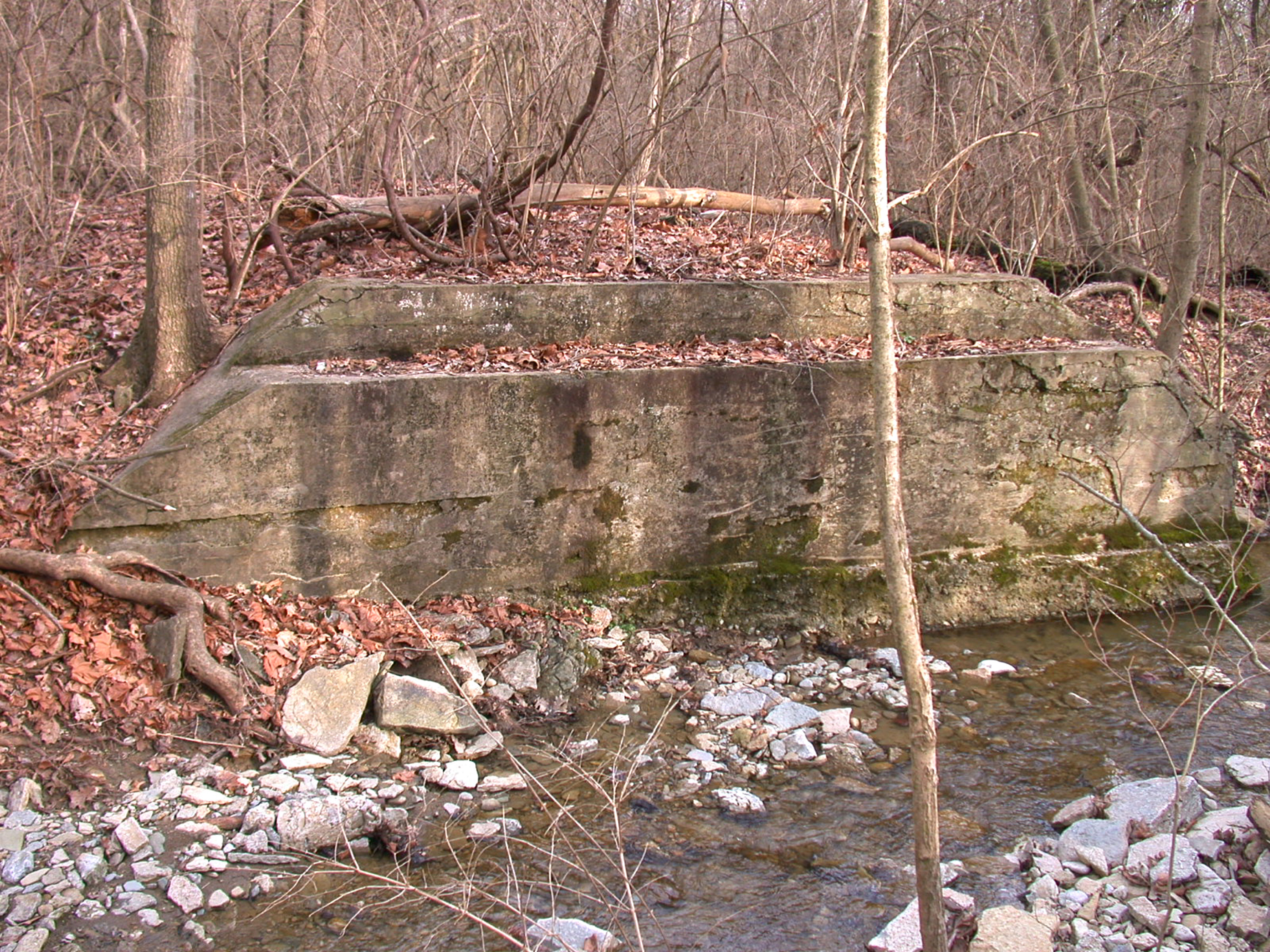 C&C bridge structure in Redbird Hollow in southern Indian Hill, looking southeast. This bridge abutment is just off the small parking lot on Given Road where people who want to walk the trail park.