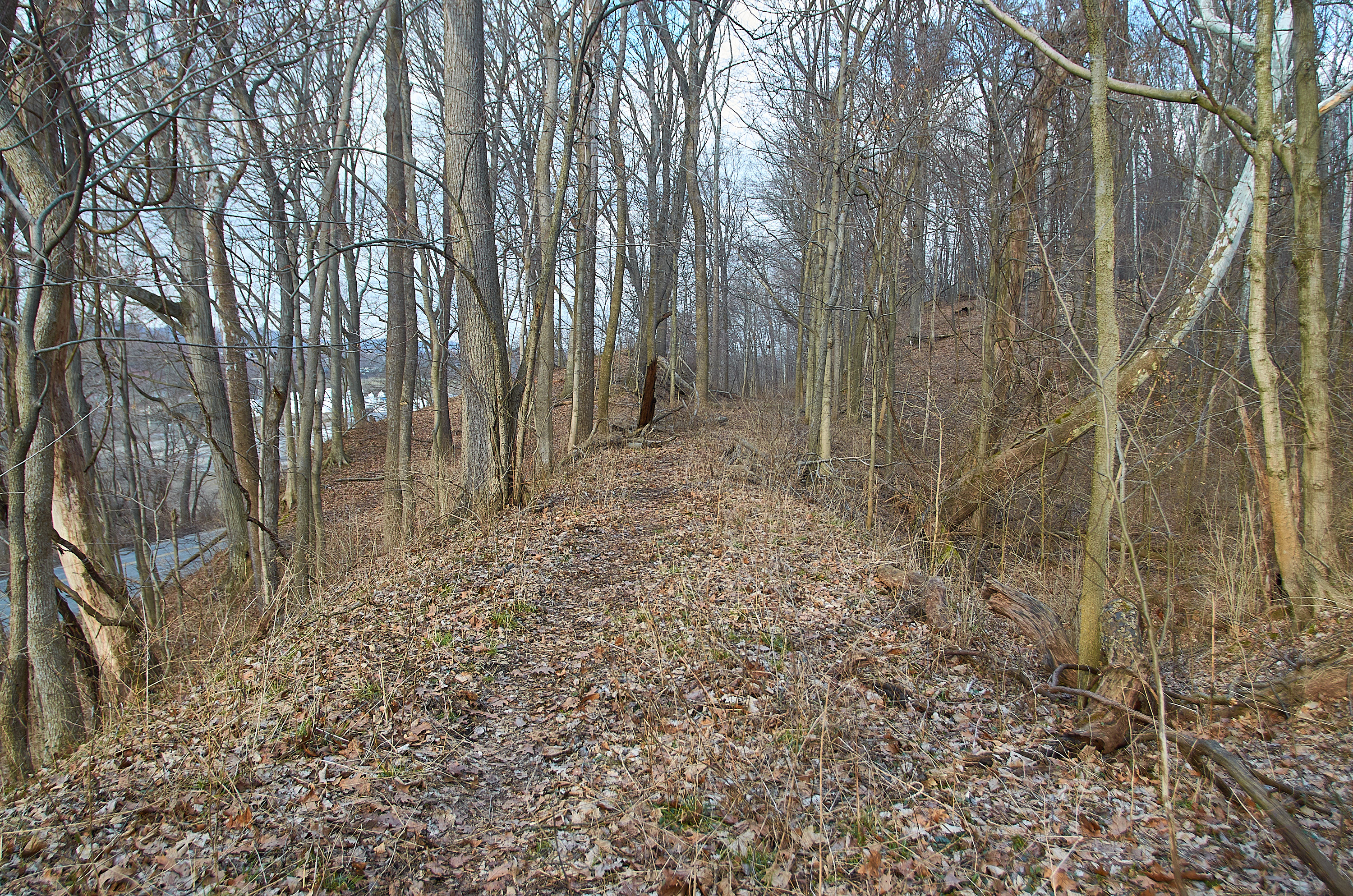 CG&P ROW near Kellogg Avenue in California Woods, looking northeast towards Salem Avenue. The cut in the distance and fill in the foreground is very evident here.