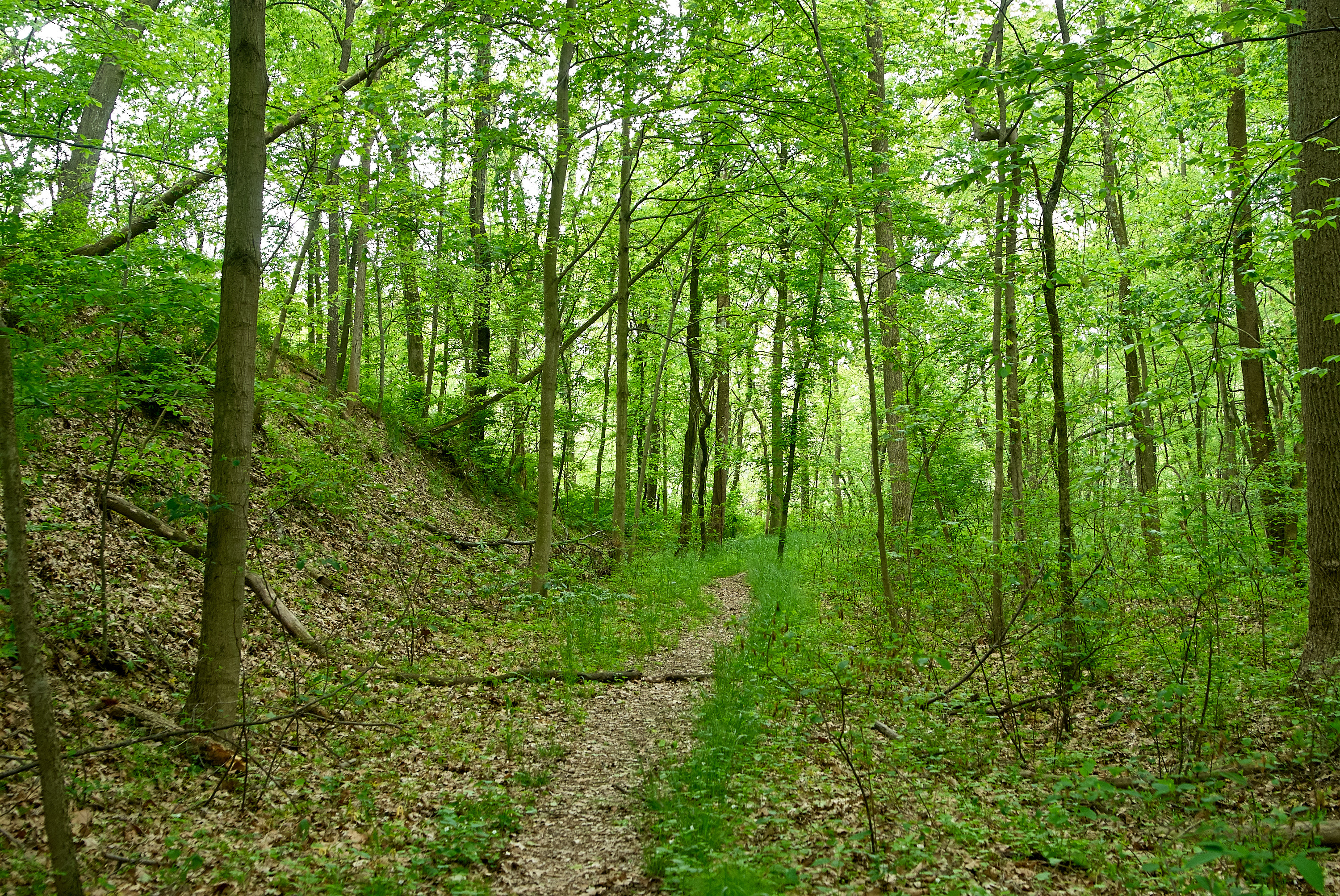 A typical view of the CG&P California Woods ROW. Most of the route through the preserve is part of a nature trail. It's a beautiful hike, and well worth the climb.