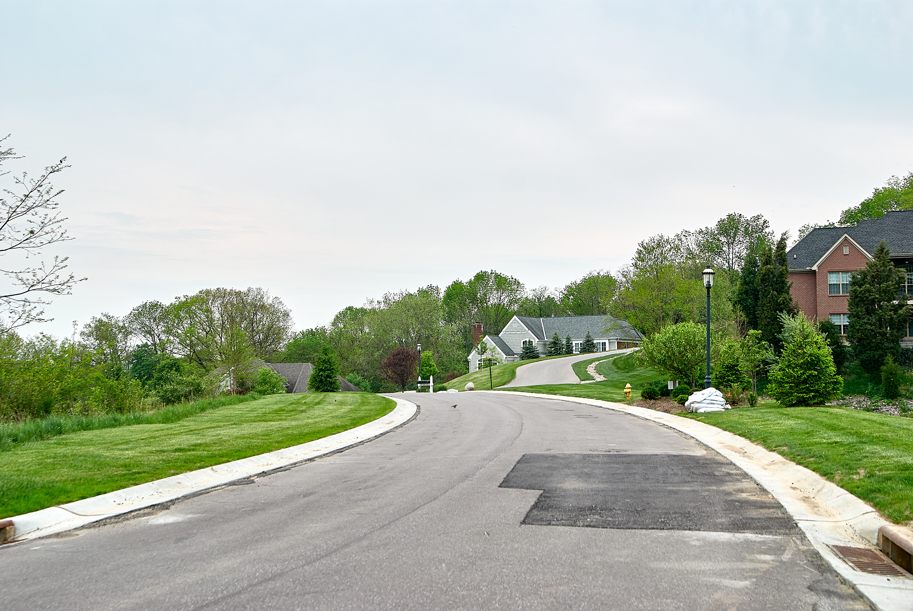Coventry Woods Drive in Mt. Washington, looking southwest. This new road is located approximately on the old ROW, which came from California Woods and Moon Valley Lane about through the gray house in the distance. Presumably there was a trestle over Apple Hill Road.