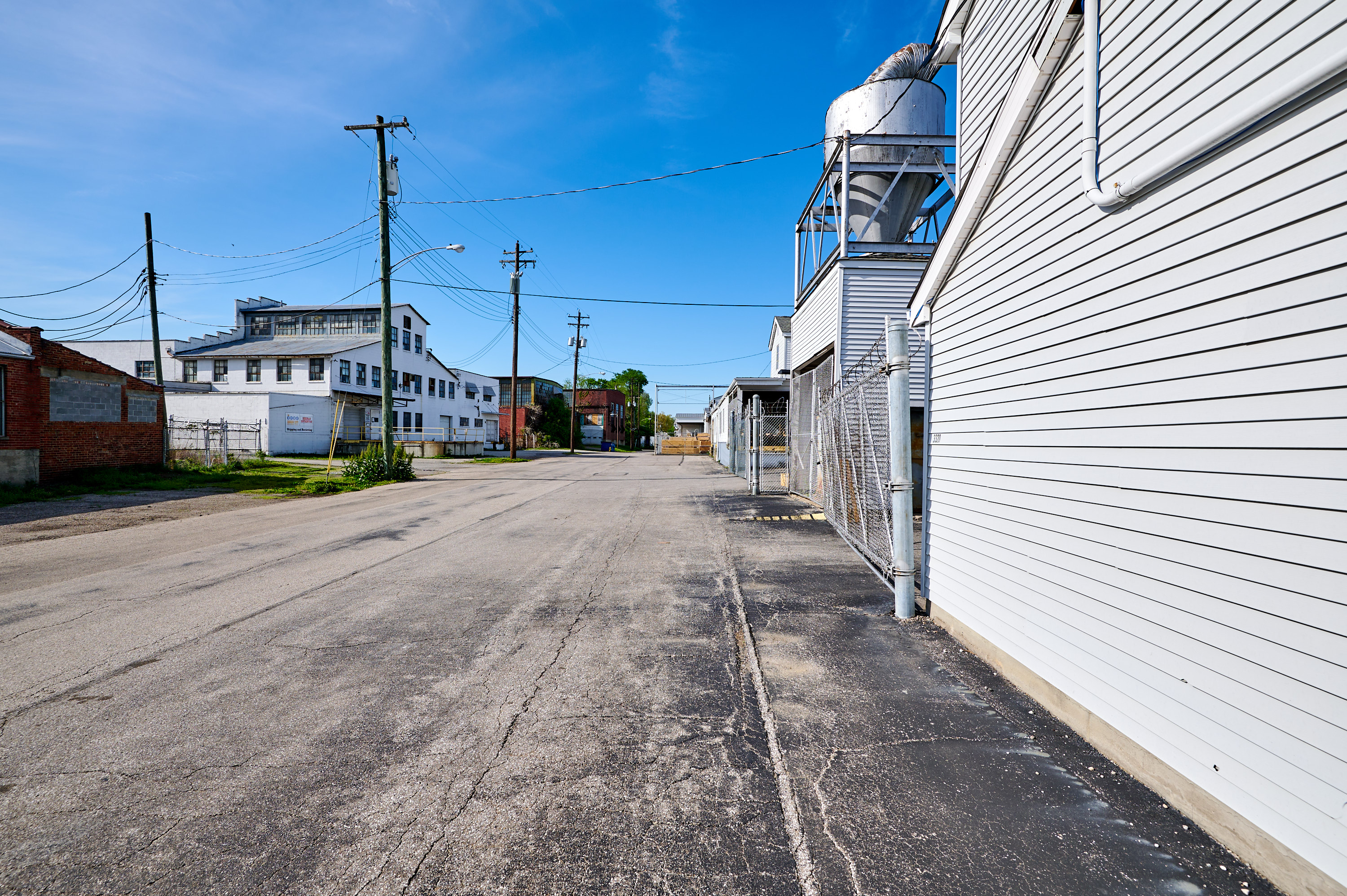 CH&D industrial spur at Llewellyn Street north of Millcreek Road in South Fairmount, looking north.