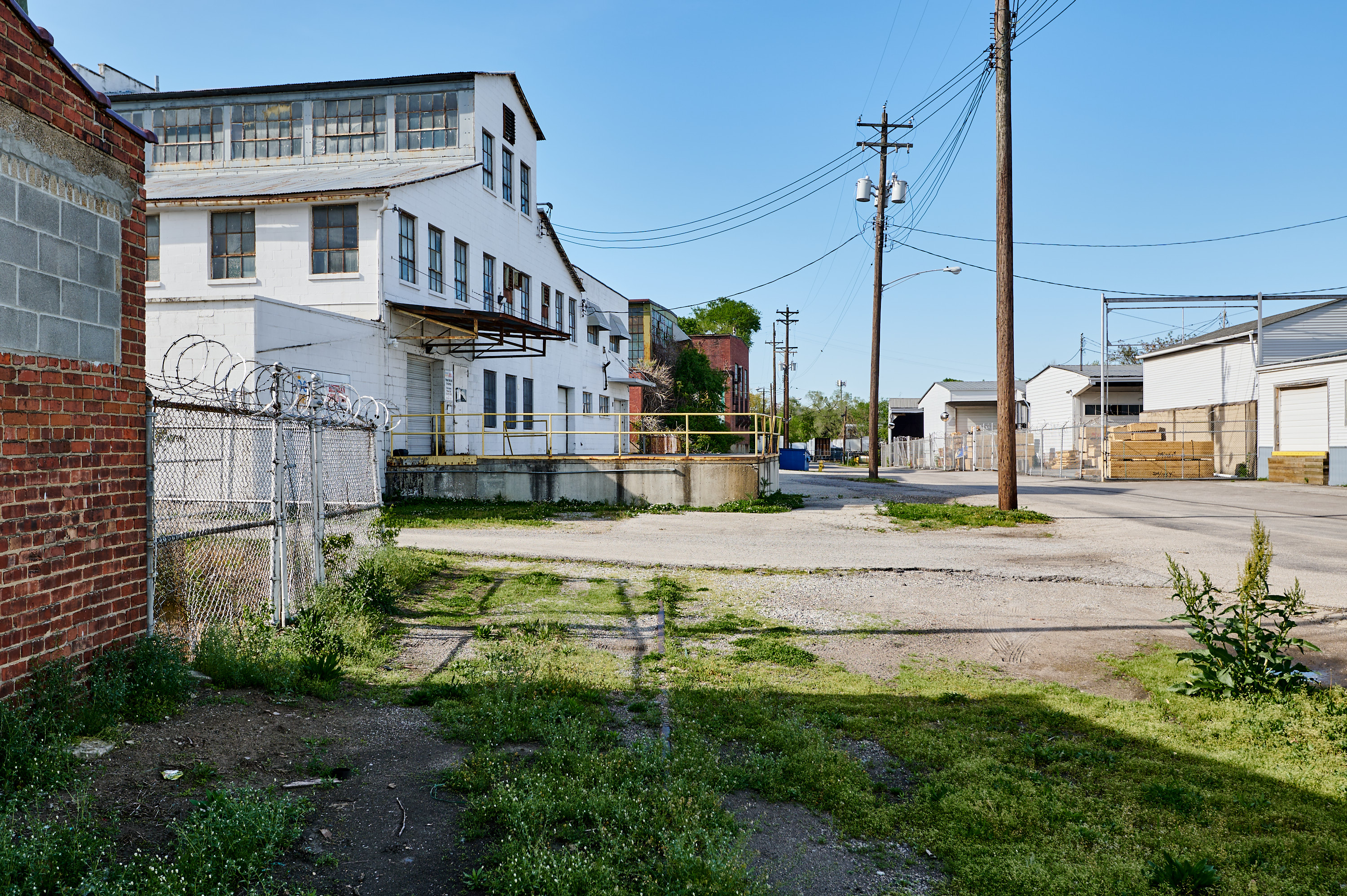 CH&D industrial spur at Llewellyn Street north of Millcreek Road in South Fairmount, looking north.