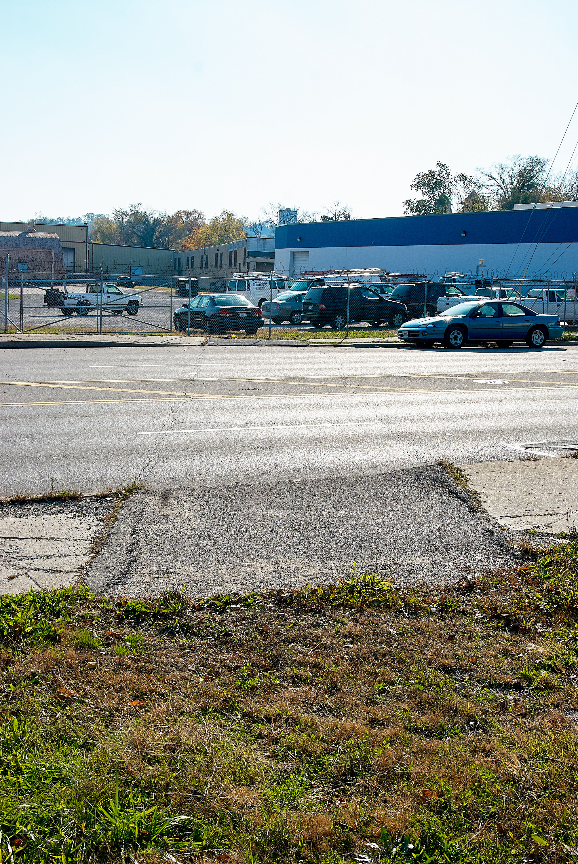 CH&D crossing at Elmore Avenue in South Cumminsville, looking southwest. The small Southside station was located on the other side of the street.