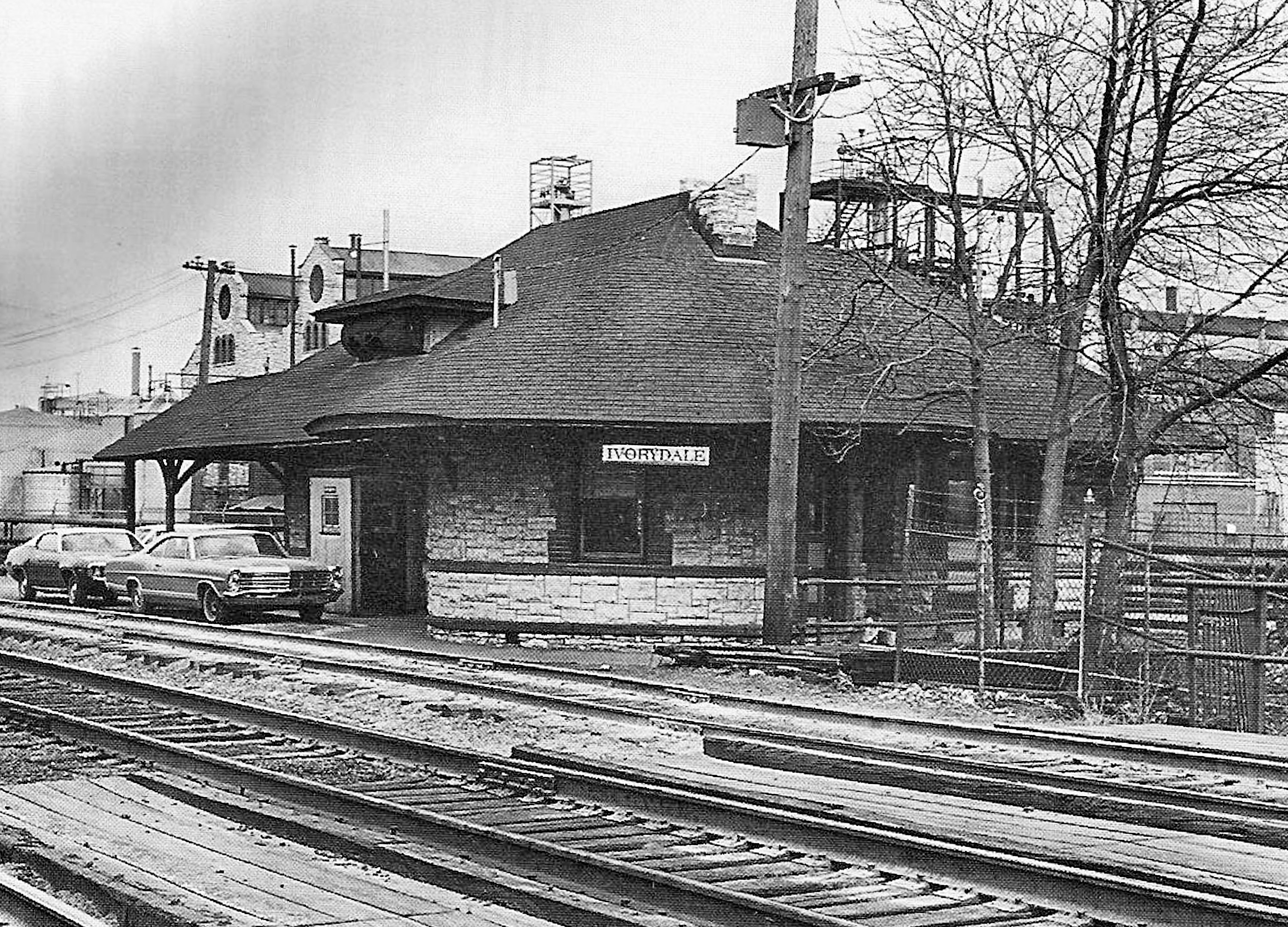 Another old view of the CH&D Ivorydale station, looking east. Based on the cars, this would be the 1960s or 1970s, and the station was likely demolished shortly after this point.