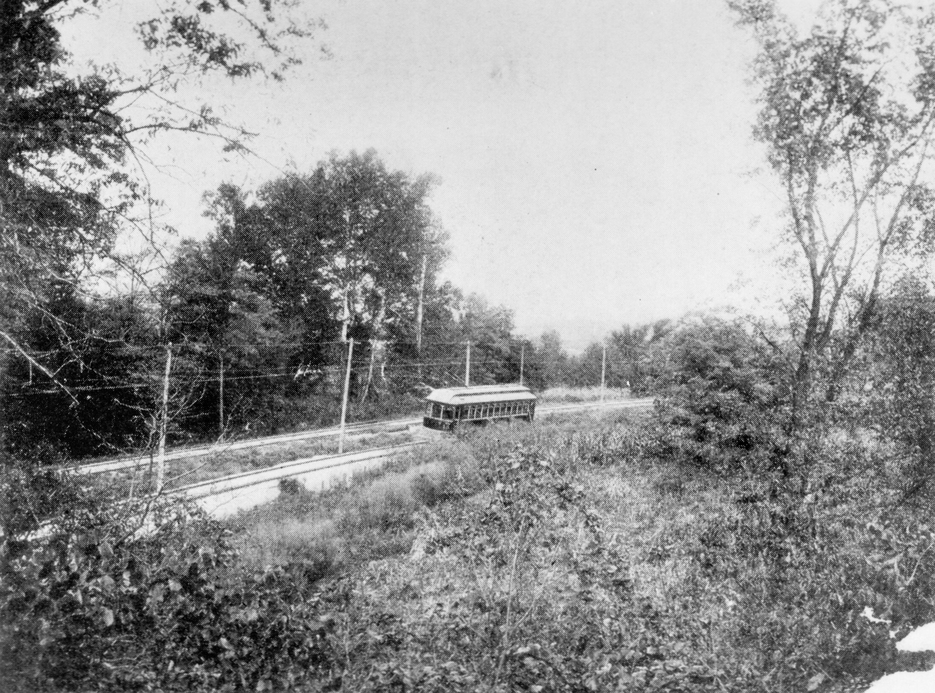 Historic photo of a CL&A car captioned "From gravel pit, looking northwest. The Whitewater River in the distance, beyond the car. Stop No. 122." Presumably this is somewhere north of Dry Fork Creek where the CL&A and Big Four went through the country apart from Kilby Road. From "Along the Line," a promotional booklet published by the CL&A, provided by Bill Van Doren.
