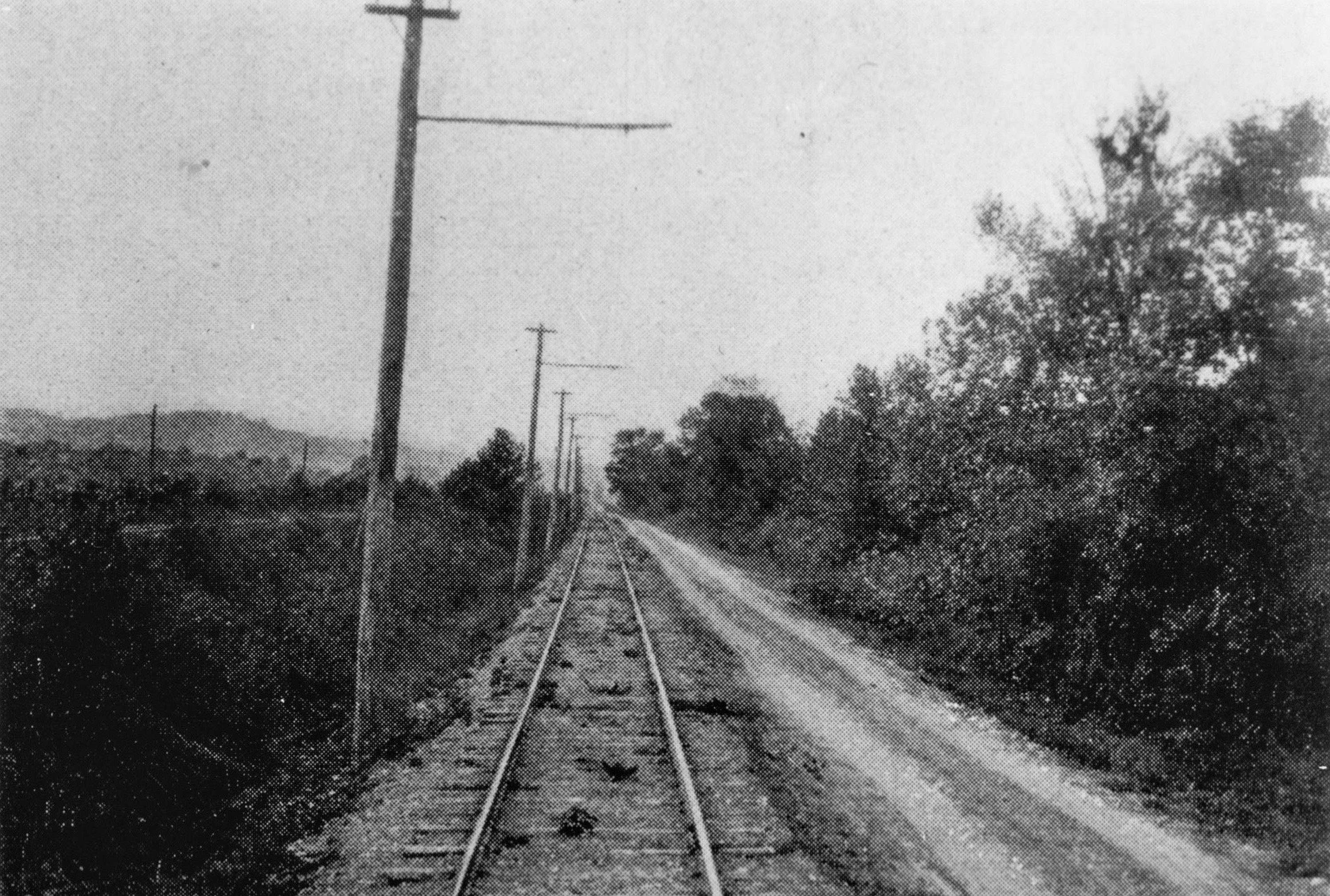 Historic photo of the CL&A captioned "A stretch of track near Simonson. Stop No. 123." The Simonson property and station was located near the Campbell Road turnoff. Since the CL&A and Big Four ran through the country away from parallel roads for a few miles between Dry Fork Creek and Harrison, this is likely looking northwest on Campbell near what is today Campbell Lakes Preserve. From "Along the Line," a promotional booklet published by the CL&A, provided by Bill Van Doren.