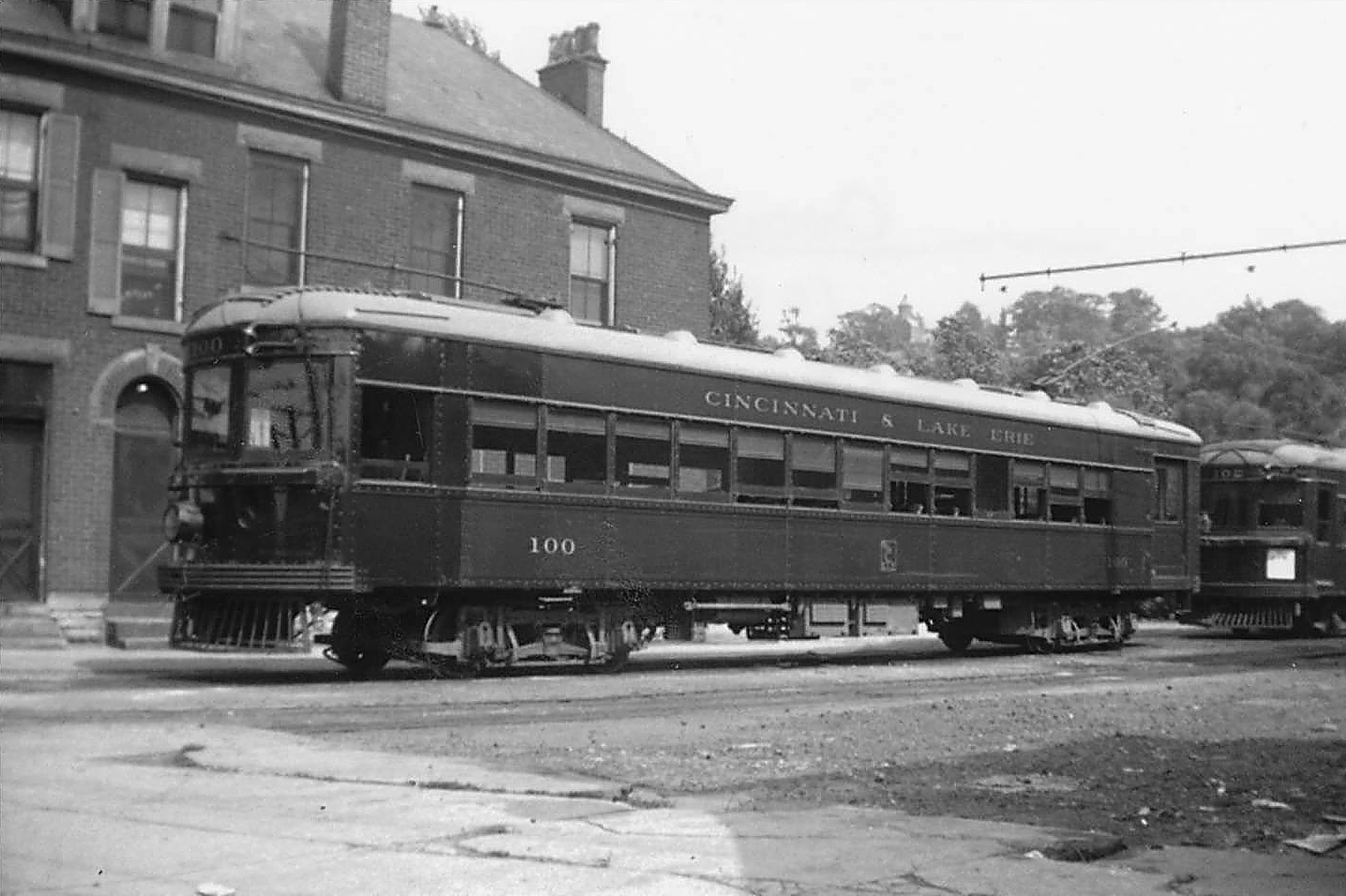 Historic photo of the C&LE passenger terminal at Crawford and Spring Grove Avenue in Cumminsville, looking east. After the original passenger station was demolished, the building in the background was used as the station, and it remains today.