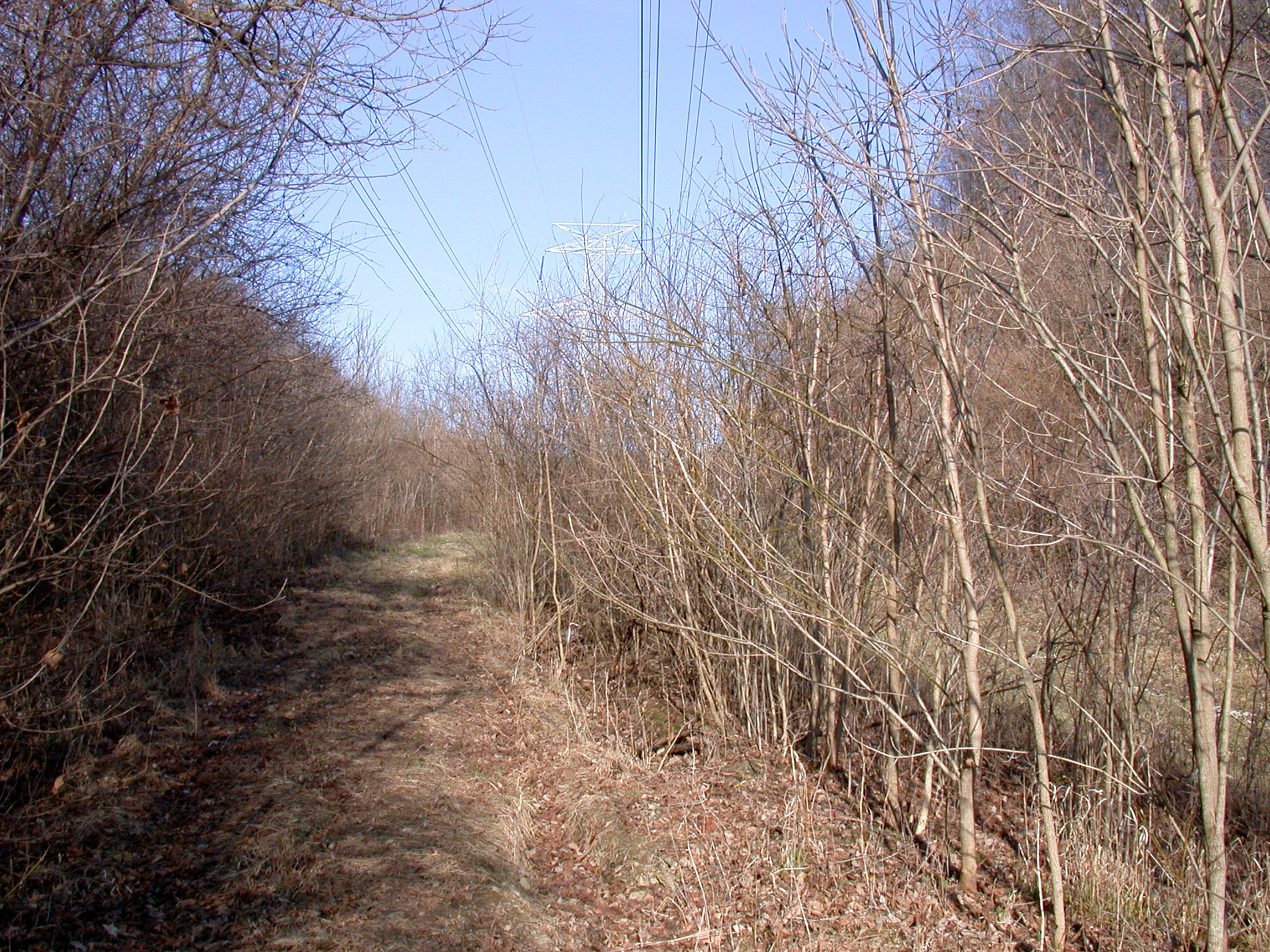 C&LE ROW south of Laboiteaux Woods in College Hill, looking northeast from the vantage point of the last photograph. The access road bypass is behind the trees to the right.