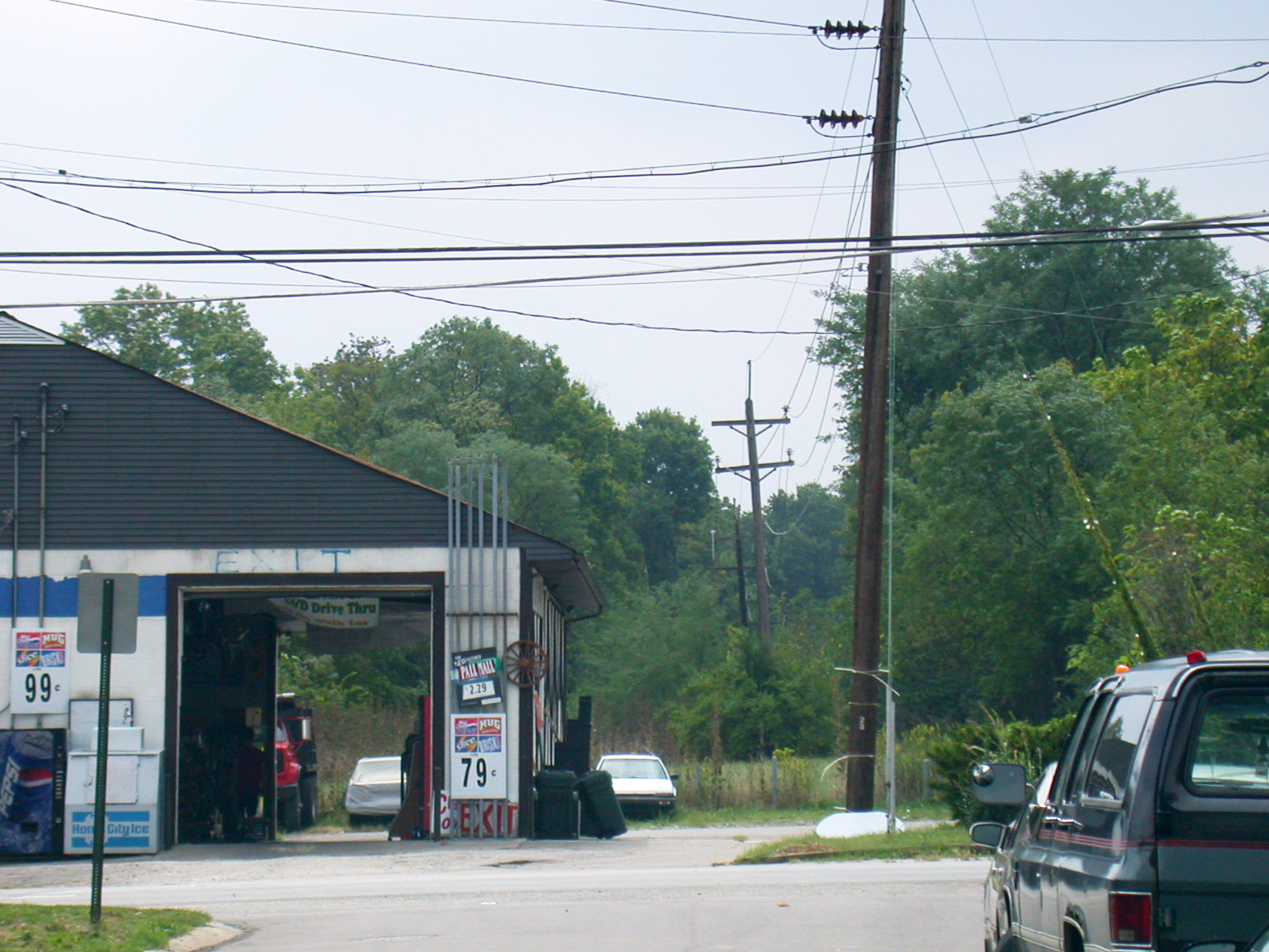 C&LE freight branch right-of-way crossing North Bend Road at Witherby Avenue in College Hill, looking south. Note how the power lines mark the route.