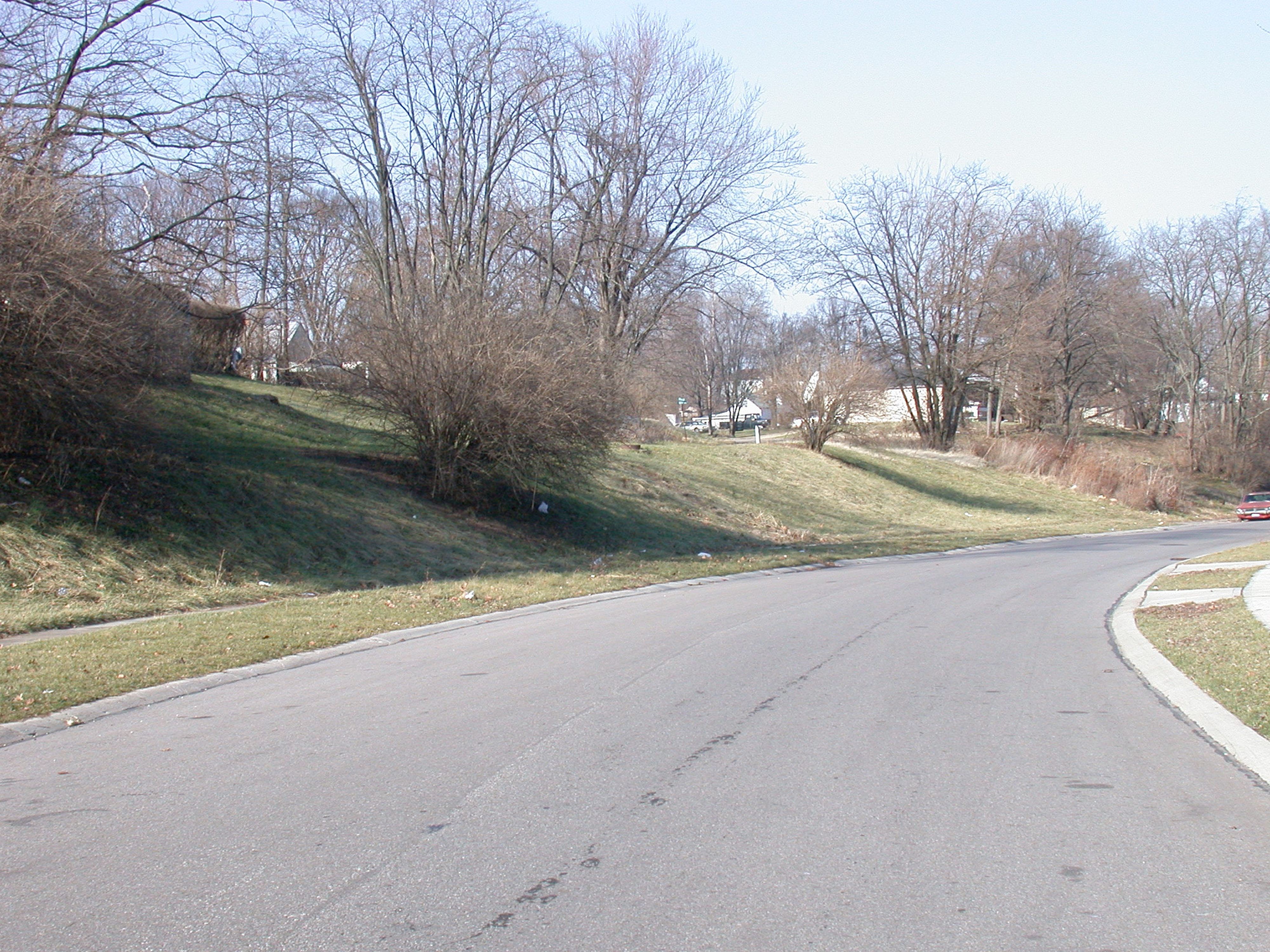 C&LE freight branch right-of-way along Witherby Avenue at 2nd Avenue north of College Hill, looking northwest.