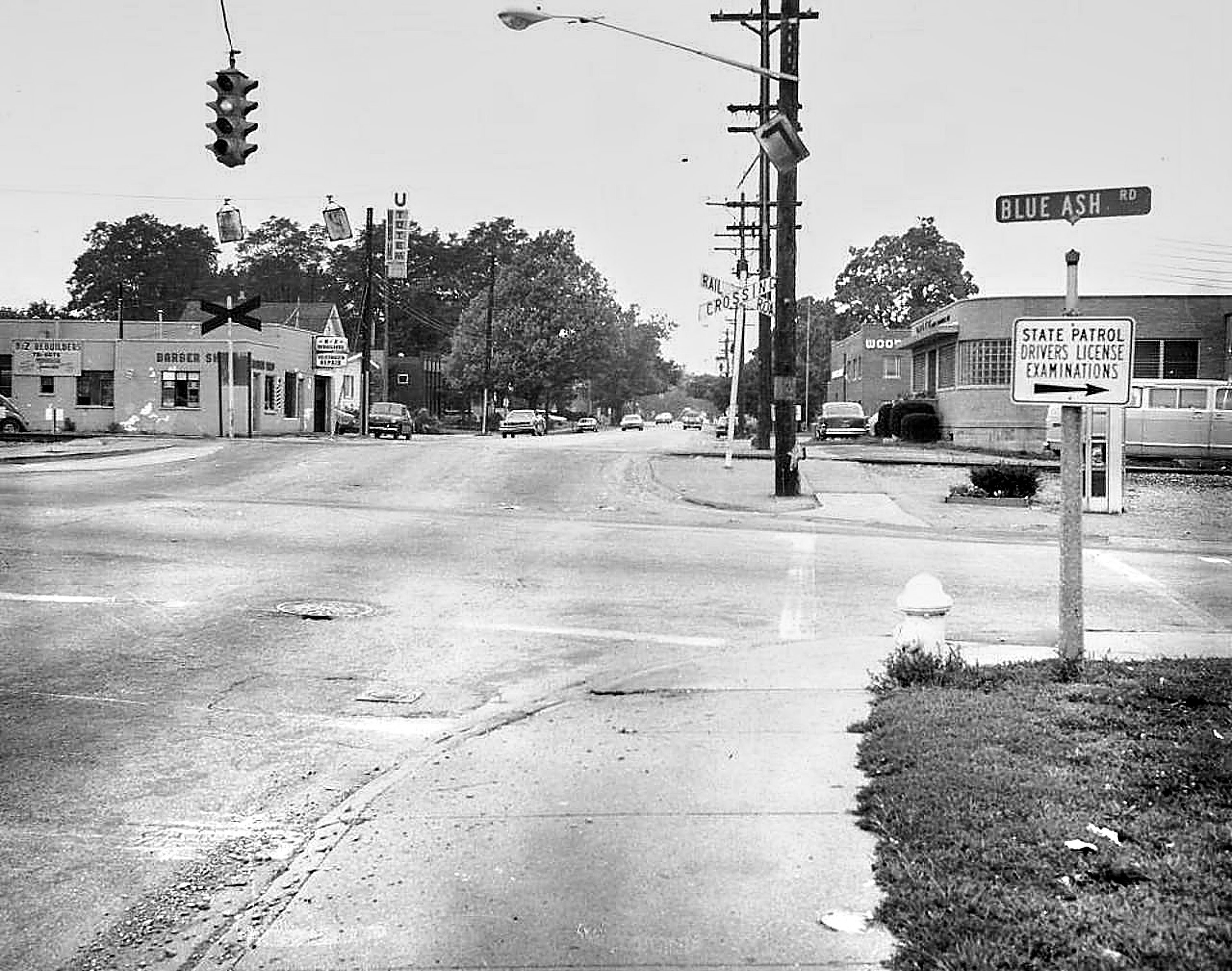 Historic photo of the CL&N crossing at Galbraith and Blue Ash Roads in Deer Park, looking west.