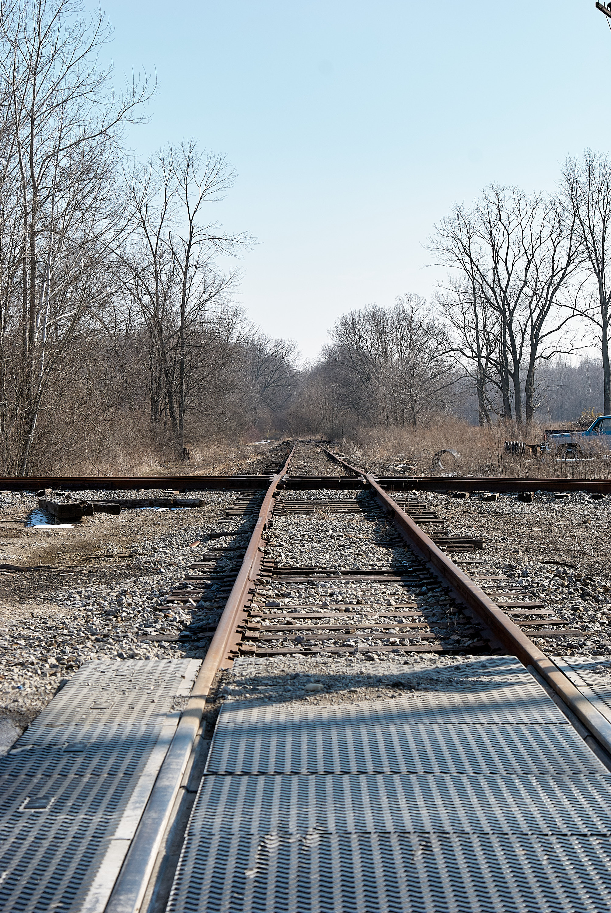 Middletown & Cincinnati track crossing the CL&N in Hageman, looking southeast from US-42. This track once connected with the Little Miami a few more miles down the line. The tracks now end a few hundred feet from here.
