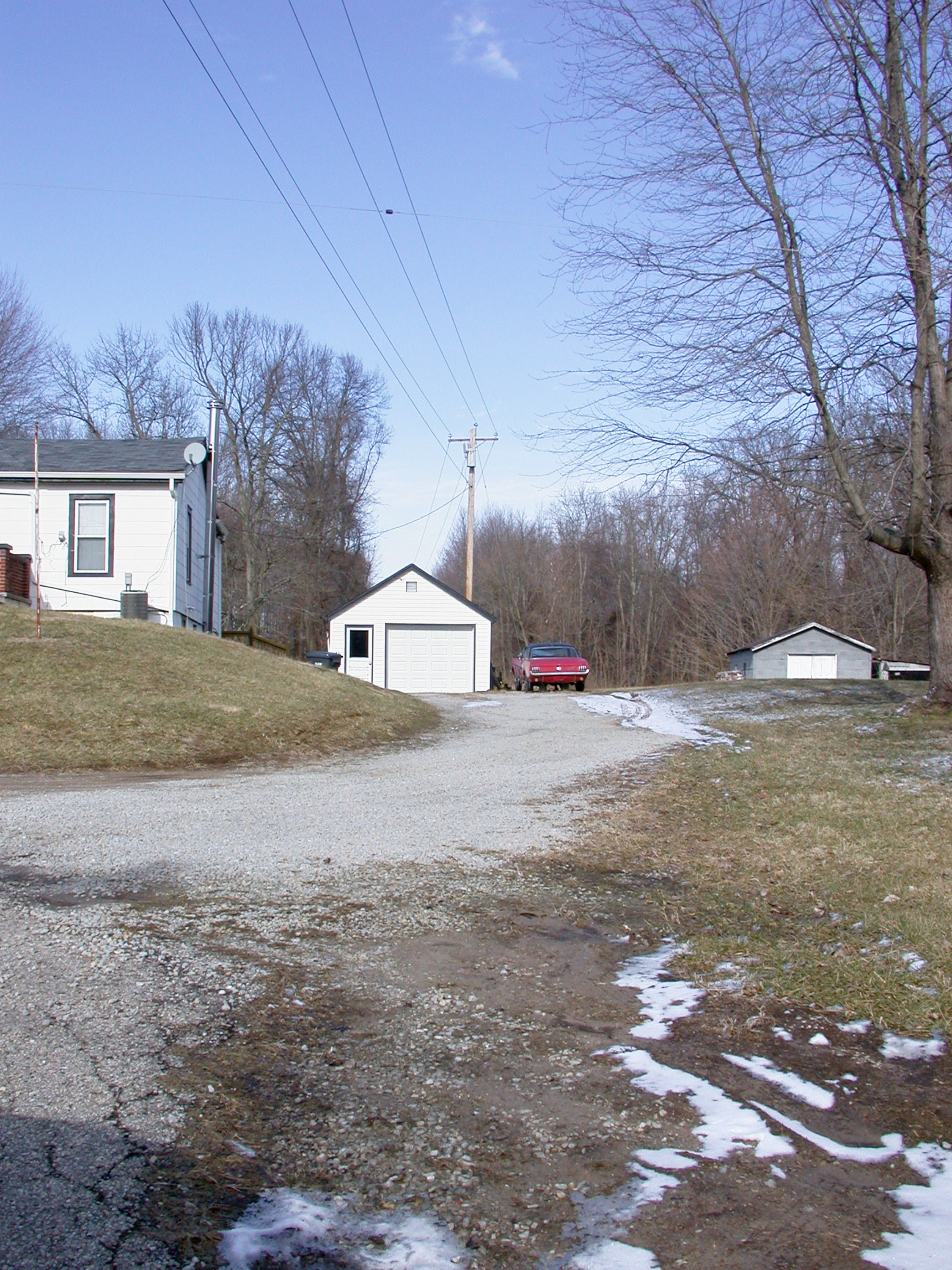 CM&B right-of-way looking northeast from the vantage point of the last photograph. The route followed the power lines. The house on the left was the Edenton station.