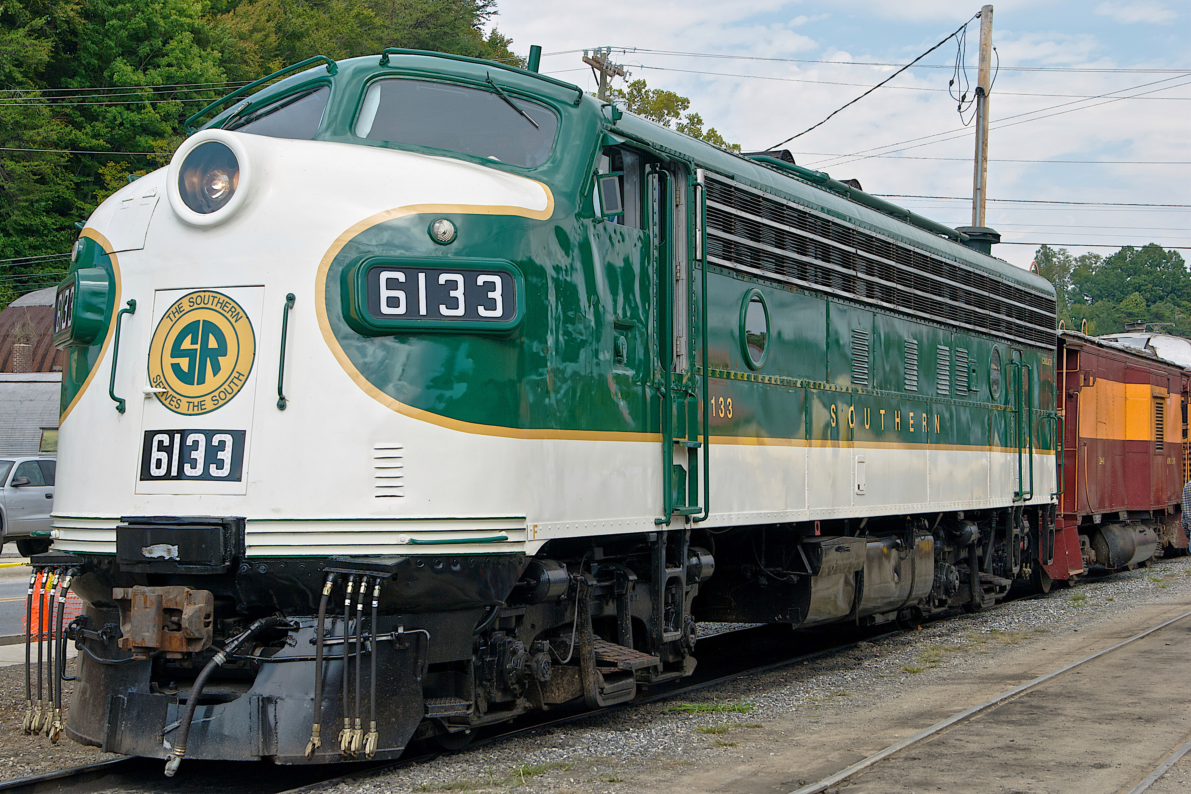 Great Smoky Mountains RR Diesel 6133 (Formerly of the Cincinnati Southern RY) at the Bryson City, North Carolina station