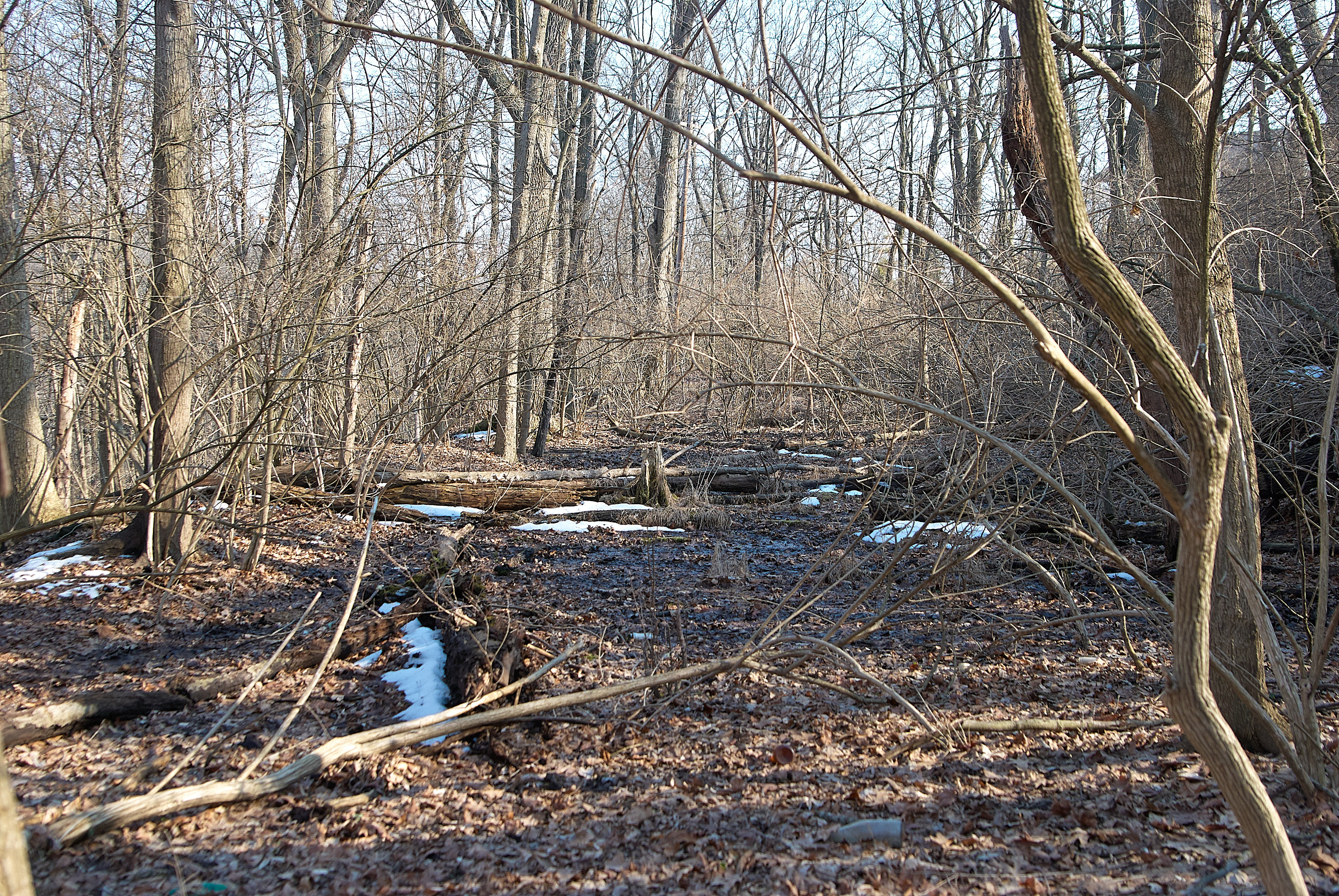 Cincinnati Western grading in Mt. Airy Forest below Kleeman Court in Monfort Heights East, looking southeast towards the location of the last photo. Notice how much wider this terrace is compared to the one in Mt. Airy Forest. They might have planned for a passing siding here.