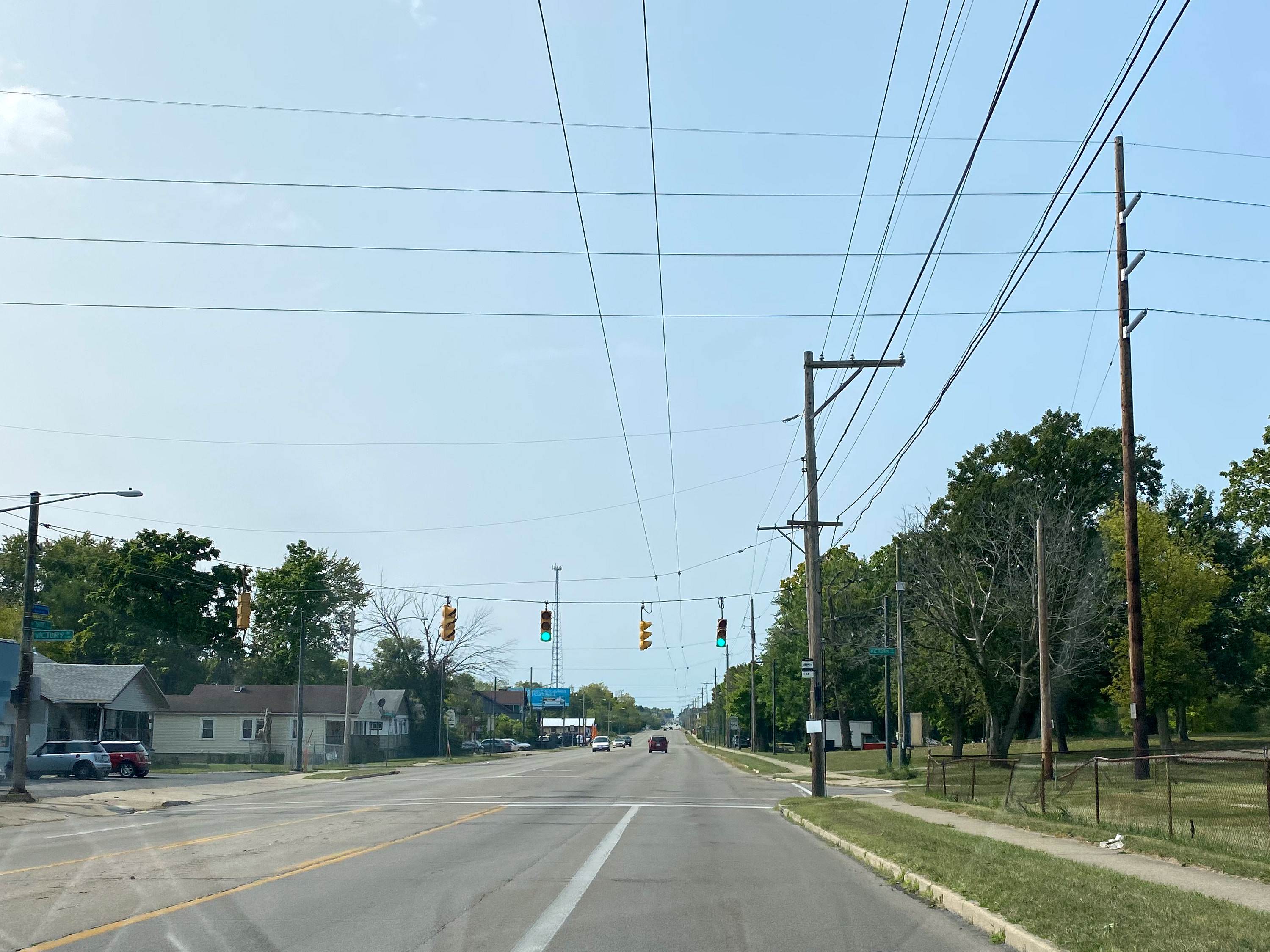 A typical view of the Dayton & Western route along 3rd Street at Victory Drive, looking west.