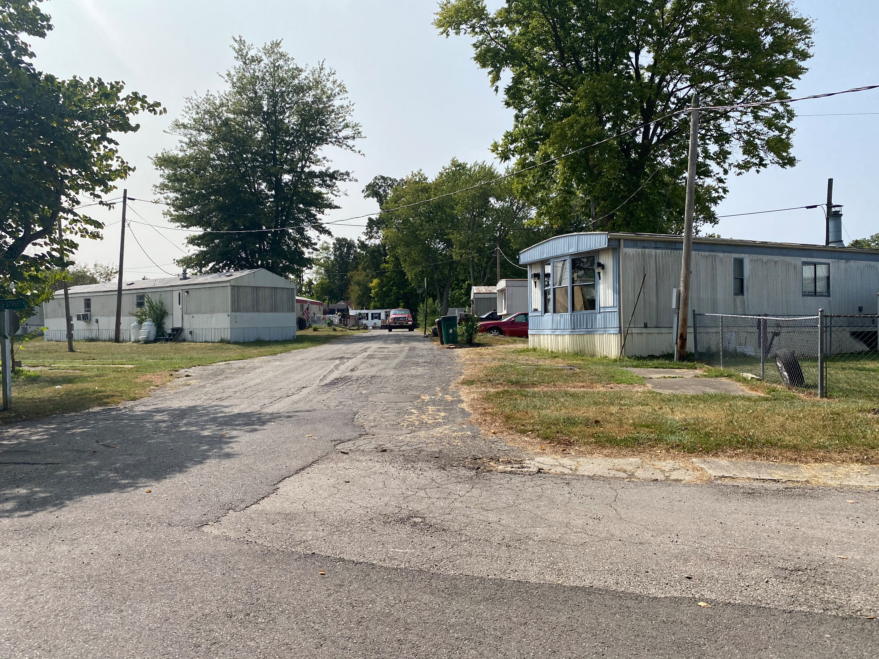 The Dayton & Western Valley Bluff bypass route along D Street in the New Lebanon Mobile Home Park, looking west southwest from E Street and the vantage point of the previous photo. The tracks ran just to the right side of this small street.