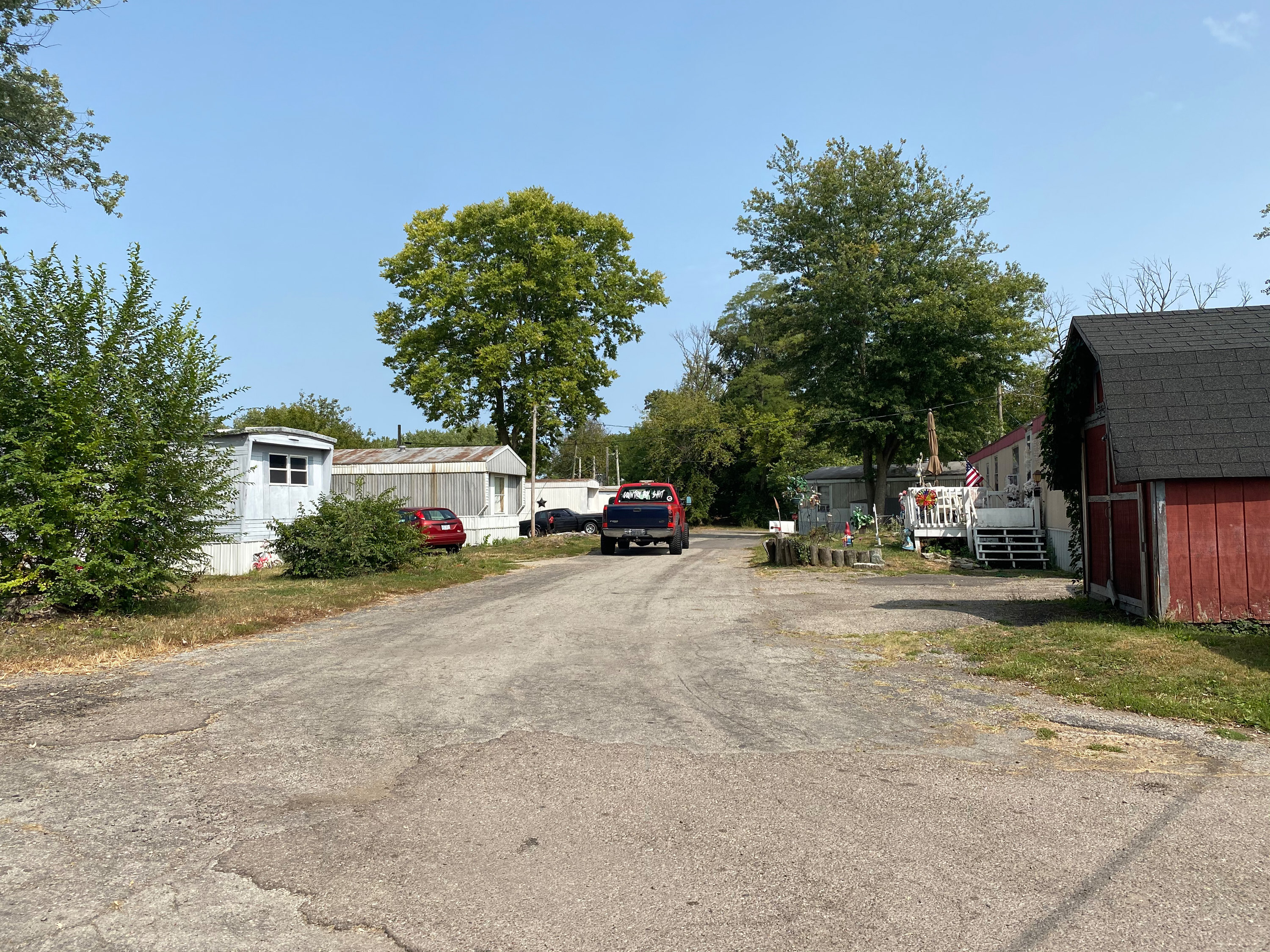 The Dayton & Western Valley Bluff bypass route along D Street in the New Lebanon Mobile Home Park, looking east northeast from B Street towards the vantage point of the previous photos.