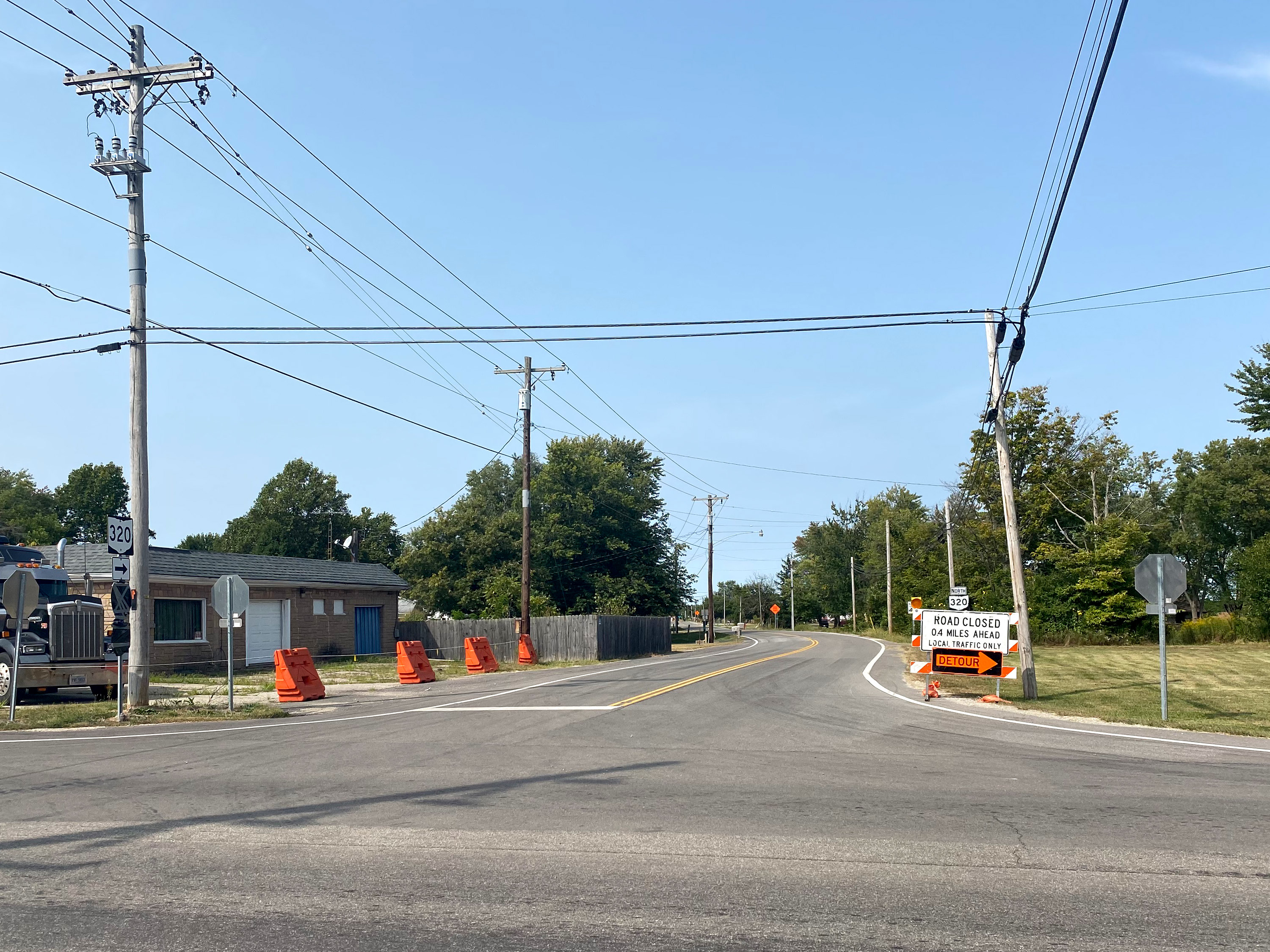 Current photo of the Dayton & Western's New Paris branch junction at New Westville, looking north from the intersection of OH-320, County Road 335 and New Westville Road. The main line ran from right to left and the branch line proceeded ahead into the distance.