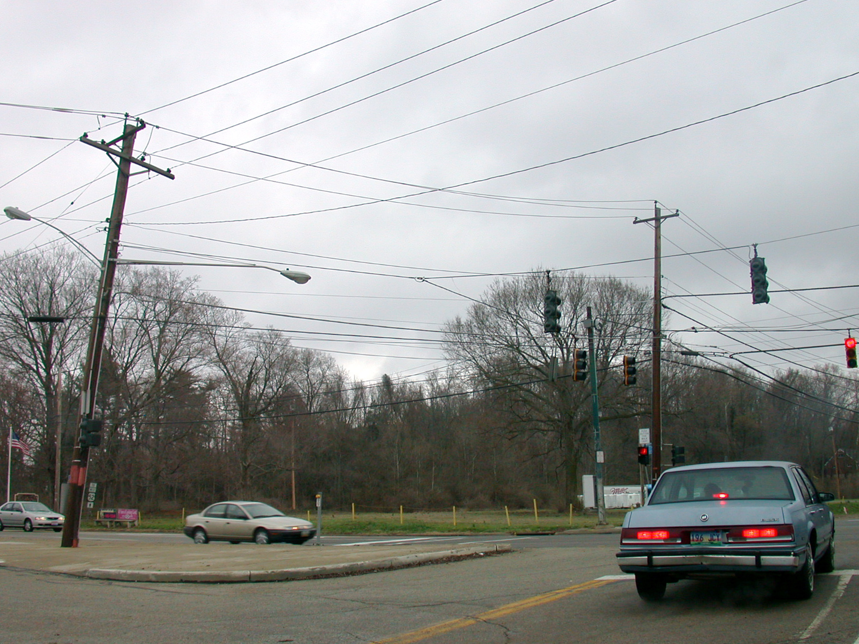 Location of the IR&T car barns, looking northwest across Kellogg Avenue from the entrance to Coney Island in California. The car barn was located across the street, behind the telephone pole on the left side of the picture.