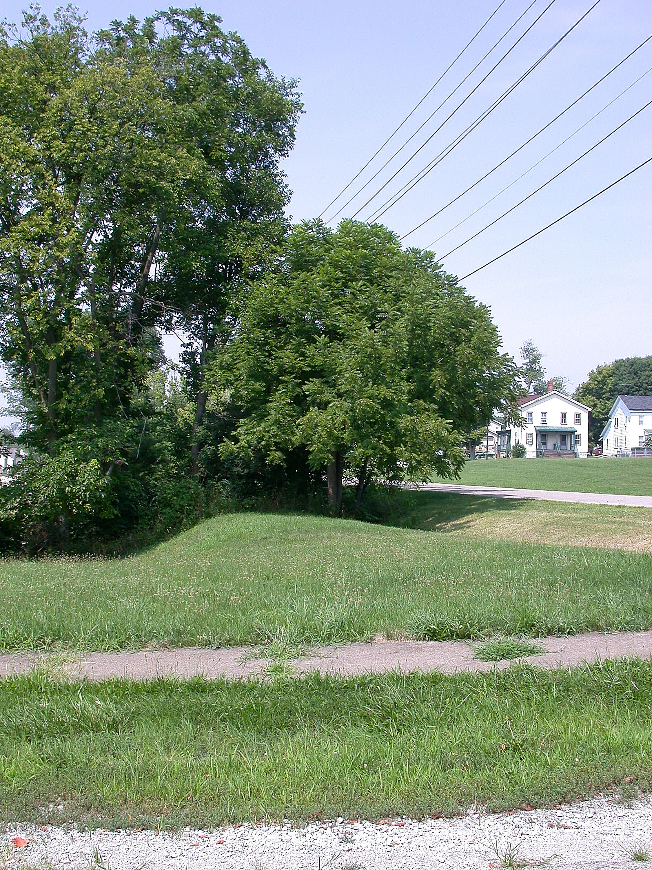 IR&T Rapid Railway right-of-way along Miami Street at College Street in Kings Mills, looking west. This berm is undoubtedly the route.