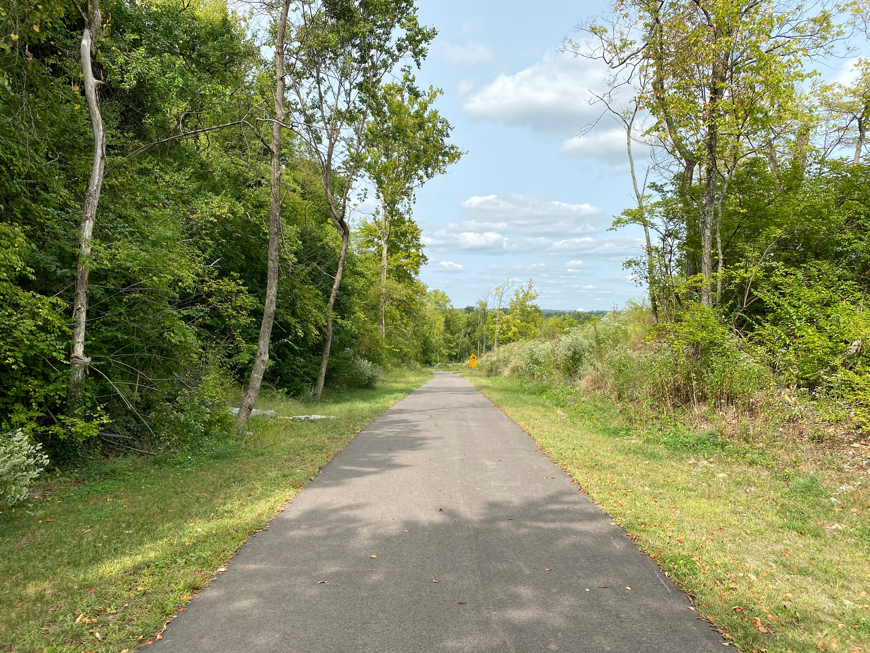 IR&T Rapid Railway right-of-way cut in the hill next to Deerfield Crossing in Lebanon, looking north from near the crest. Deerfield Road curves away from this small ridge to the east, but the IR&T plowed straight through it, necessitating a cut through the crest of the hill and a still significant grade. This is now part of the Lebanon Countryside Trail.
