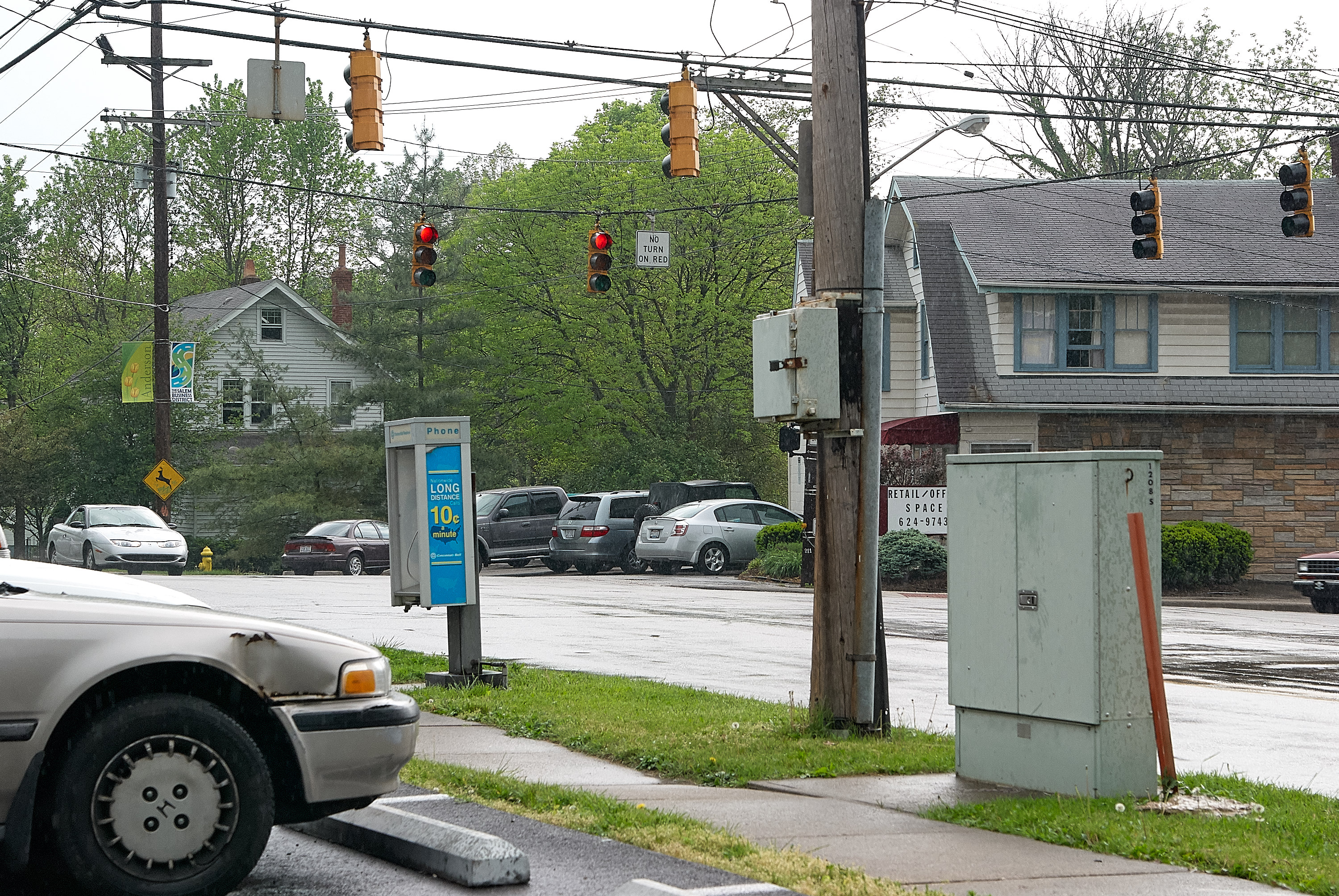 IR&T-Suburban Traction ROW approaching the intersection of Salem and Sutton Roads in Mt. Washington, looking southwest. Another short private ROW approached this intersection from the trees in the center of the photograph, and then the route rejoined Sutton.