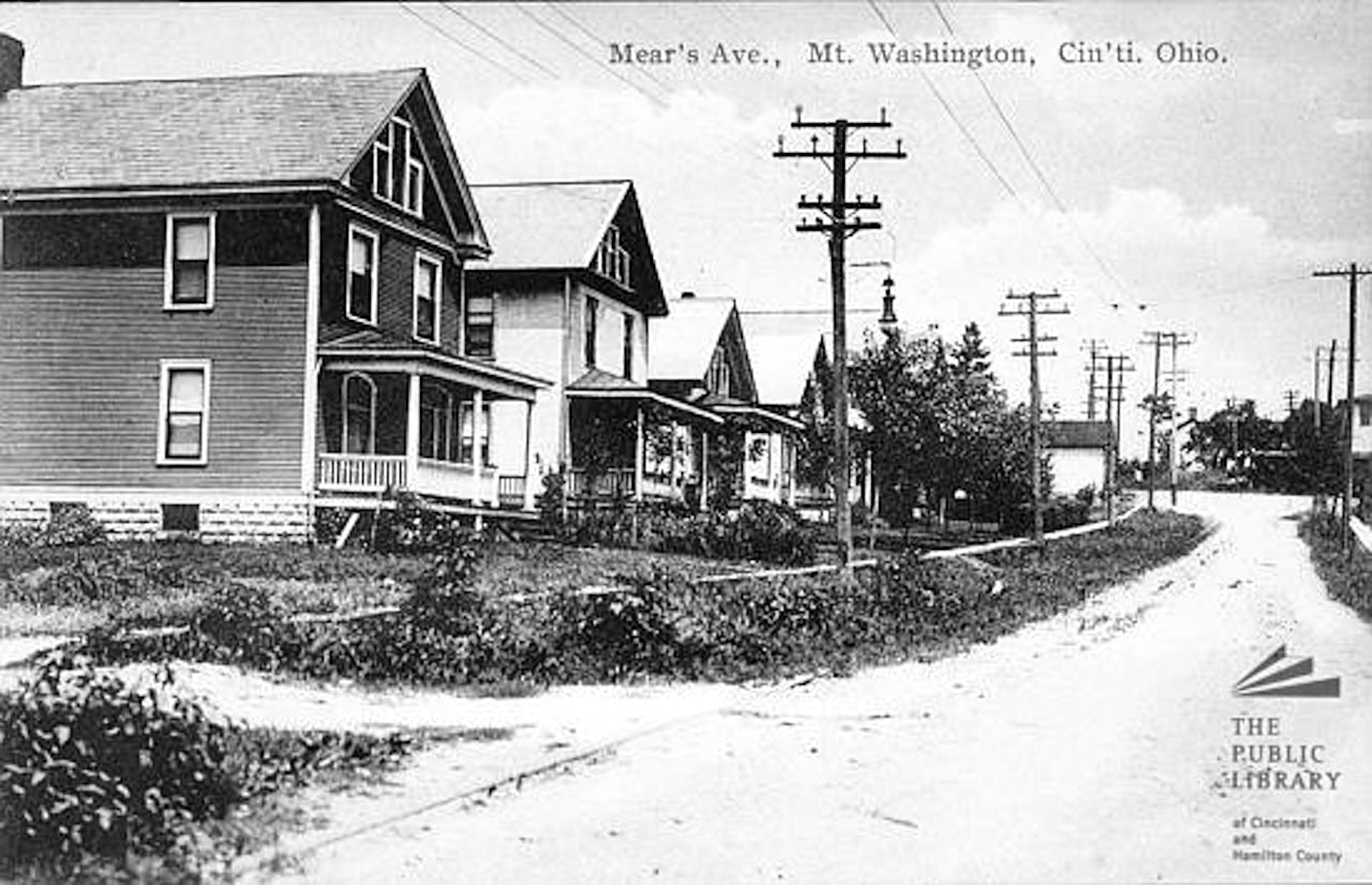Historic postcard of the IR&T-Suburban Traction route on Mears Avenue in Mt. Washington, looking north towards Beechmont Avenue in the distance.. There's no date on this image, but due to the sorry state of the tracks, it's probably the late 1910's, near the time of abandonment.