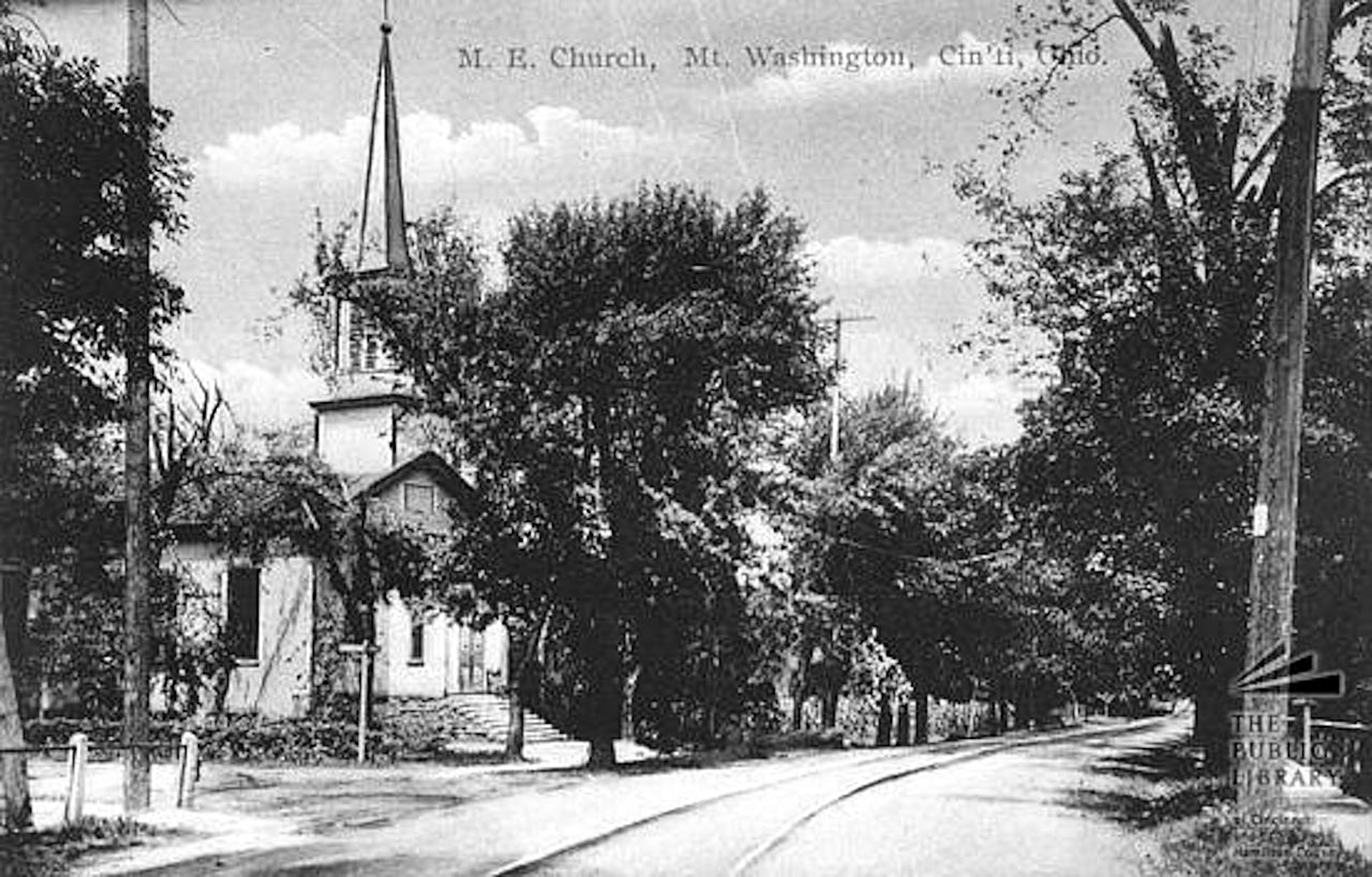 Historic postcard of the IR&T-Suburban Traction line in Mt. Washington. This is most likely looking north on Beechmont Avenue at the intersection with Campus Lane.