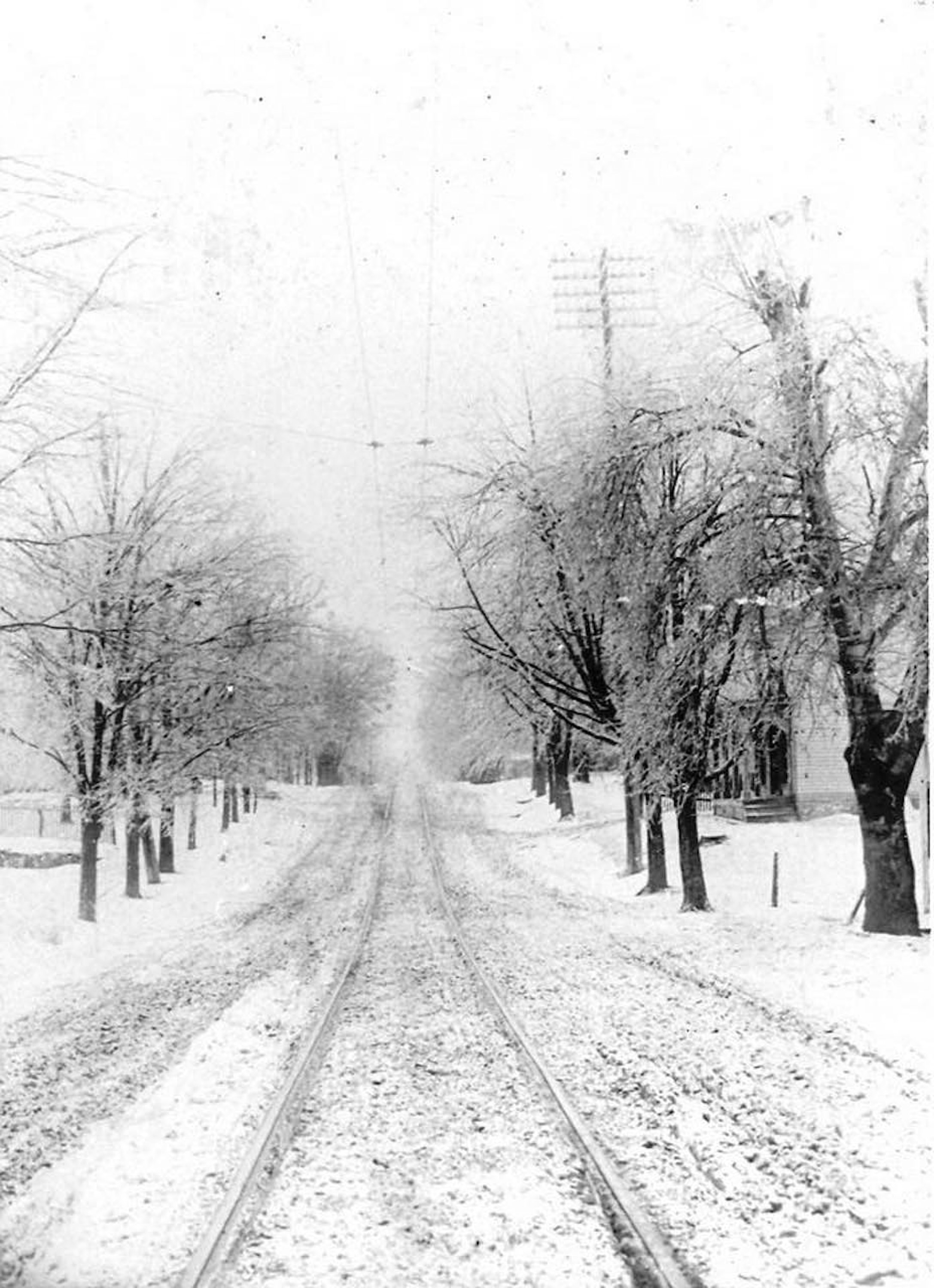 Historic photo of the IR&T Suburban Traction tracks in Amelia.