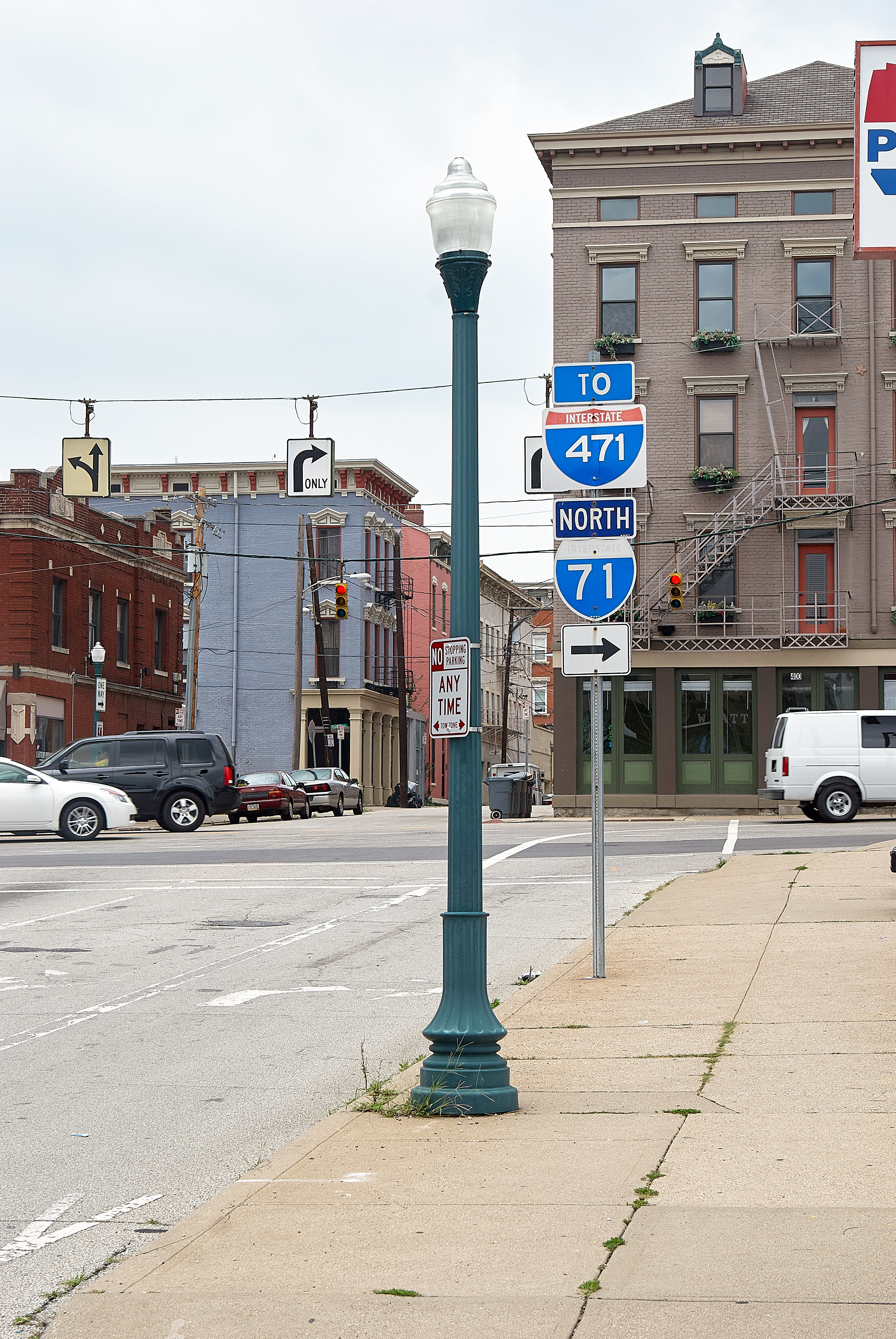 A new reproduction street light on Broadway Street downtown, looking north towards Reading Road and Over-the-Rhine. This block of Broadway no longer exists, it is now the front lawn of the casino.