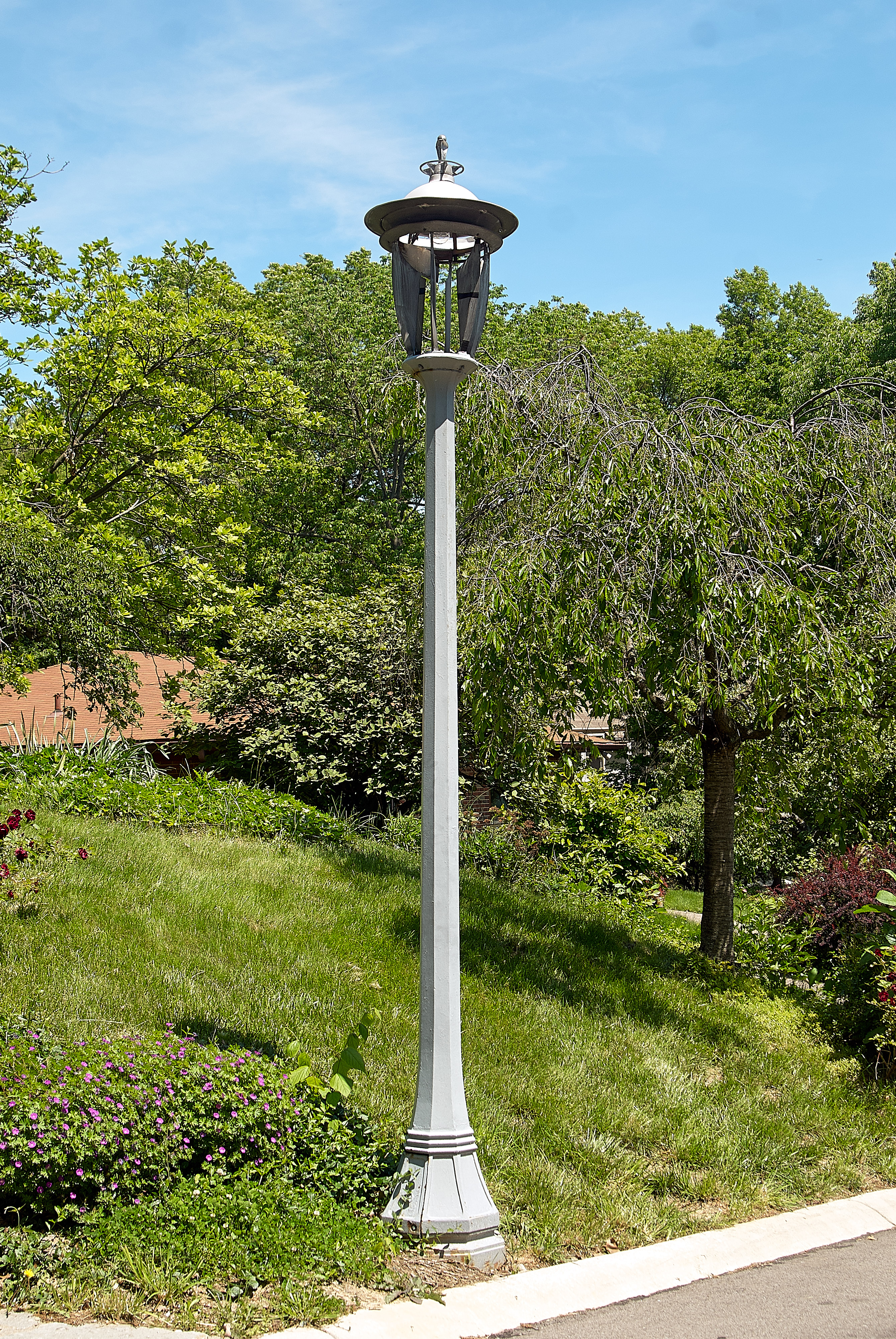 A very unusual street light on Stratford Avenue in North Avondale. While the base and pole is fairly typical, the actual luminaire is quite bizarre.