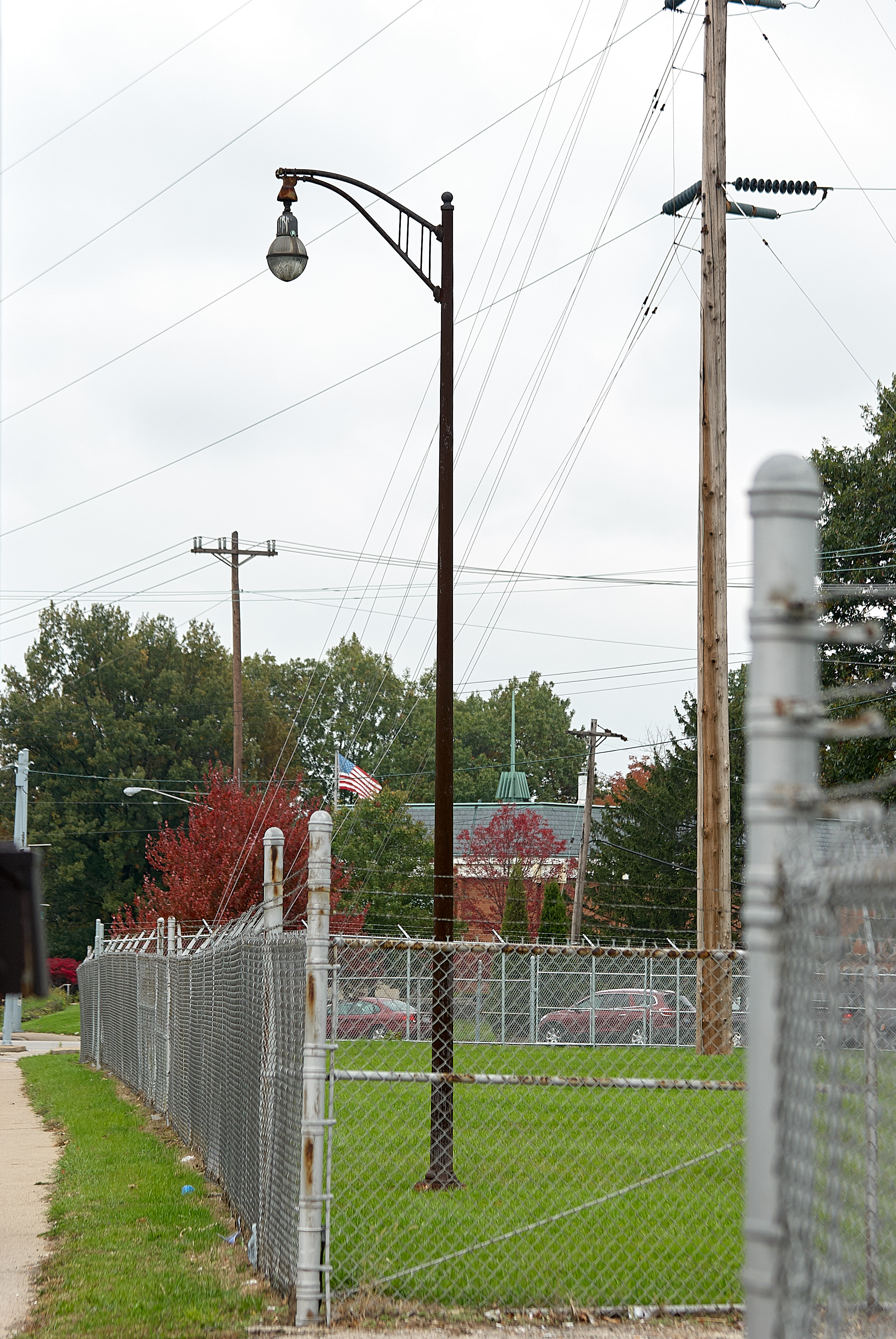 A unique overhead light at Duke Energy's Oakley substation, at the corner of Madison and Ridge, looking northeast along madison towards Ridge.