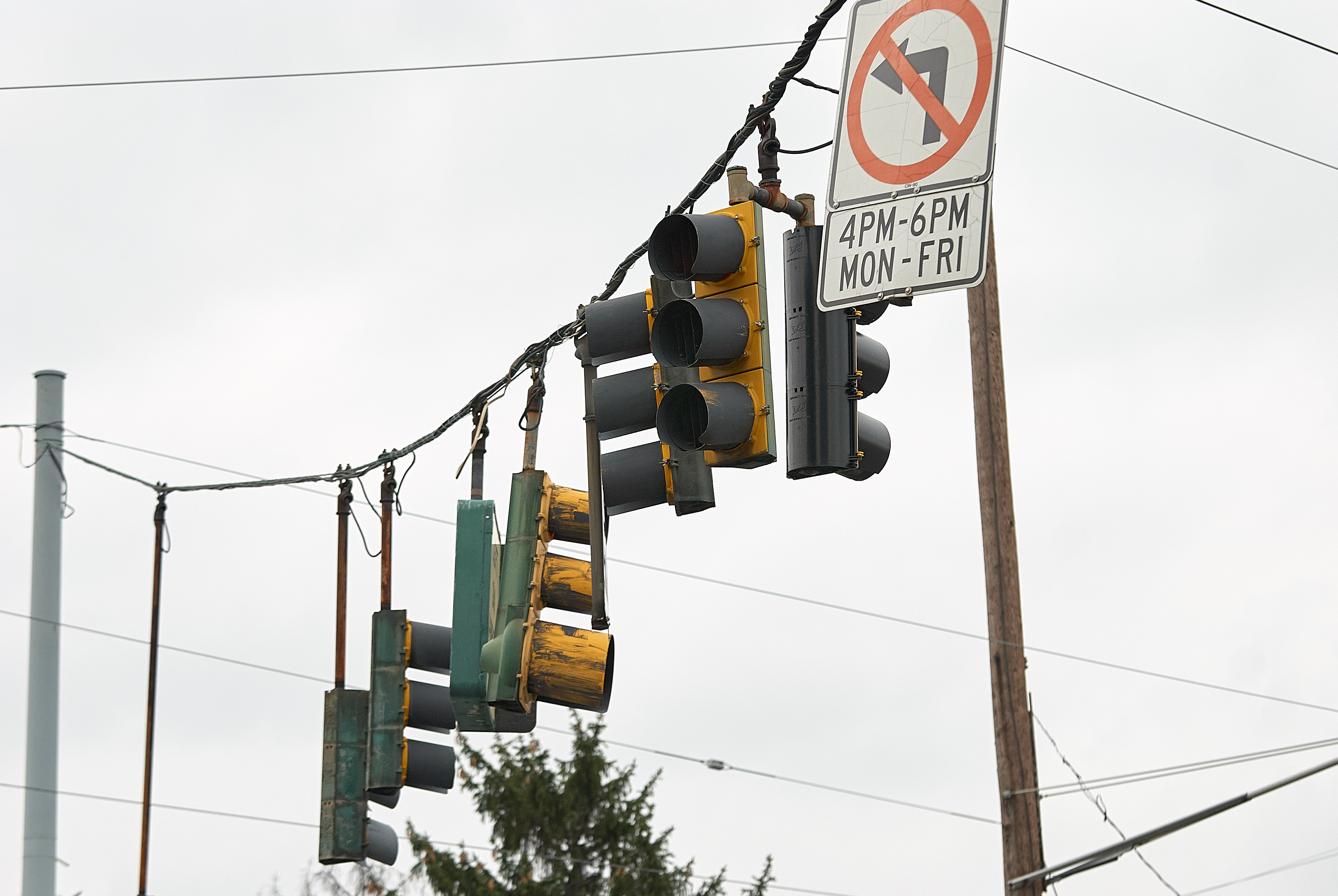 Several Automatic/LFE signals at Ridge and Madison in Oakley. The two closest signals are newer, but the rest all date to about 1958 when Ridge Road was connected through to Marburg Avenue. All the signals at this intersection were replaced in 2011 when the intersection was reconstructed.