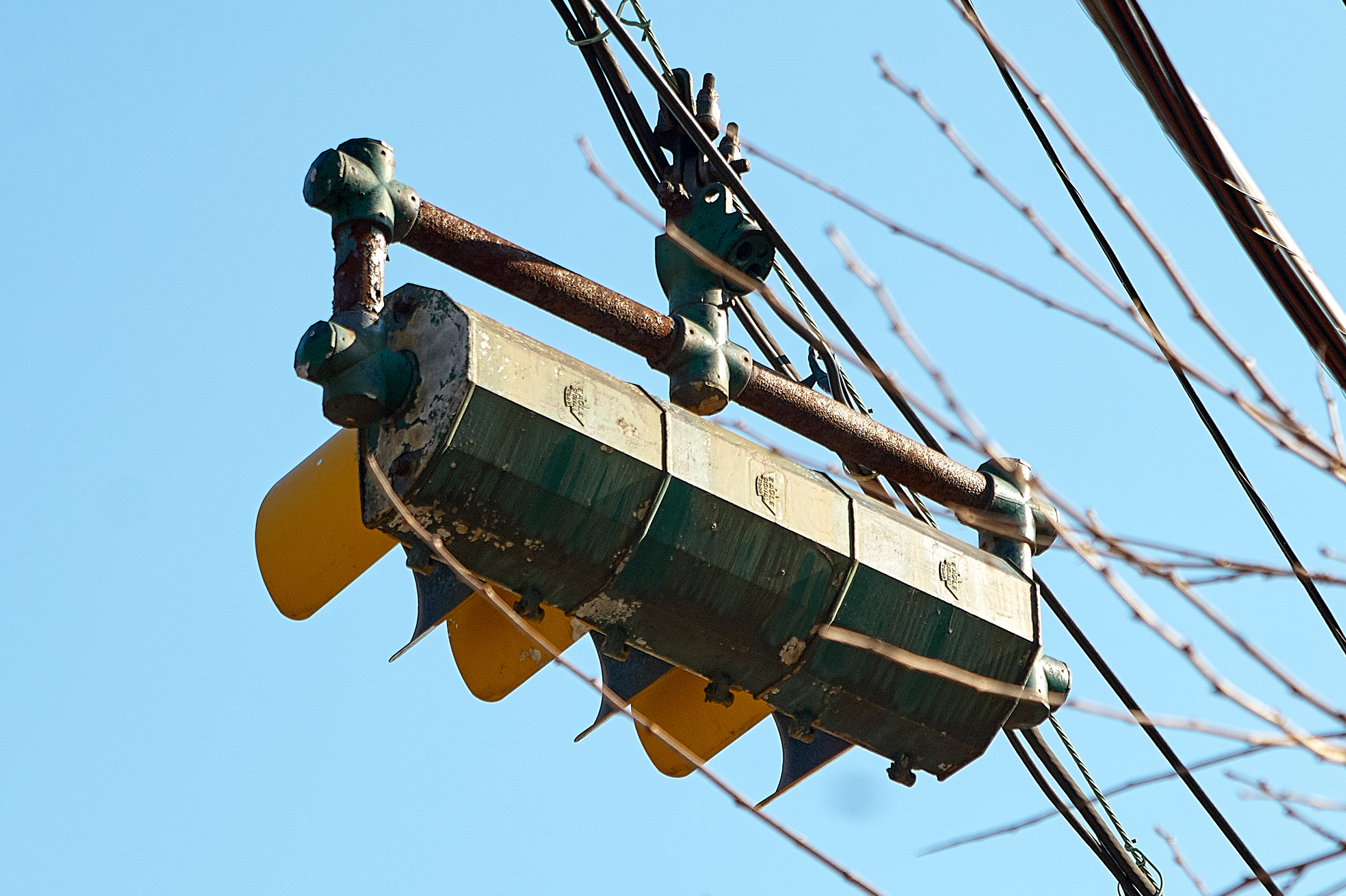 Close-up of the rear of one of the Eaglelux signals at Clifton and Lafayette