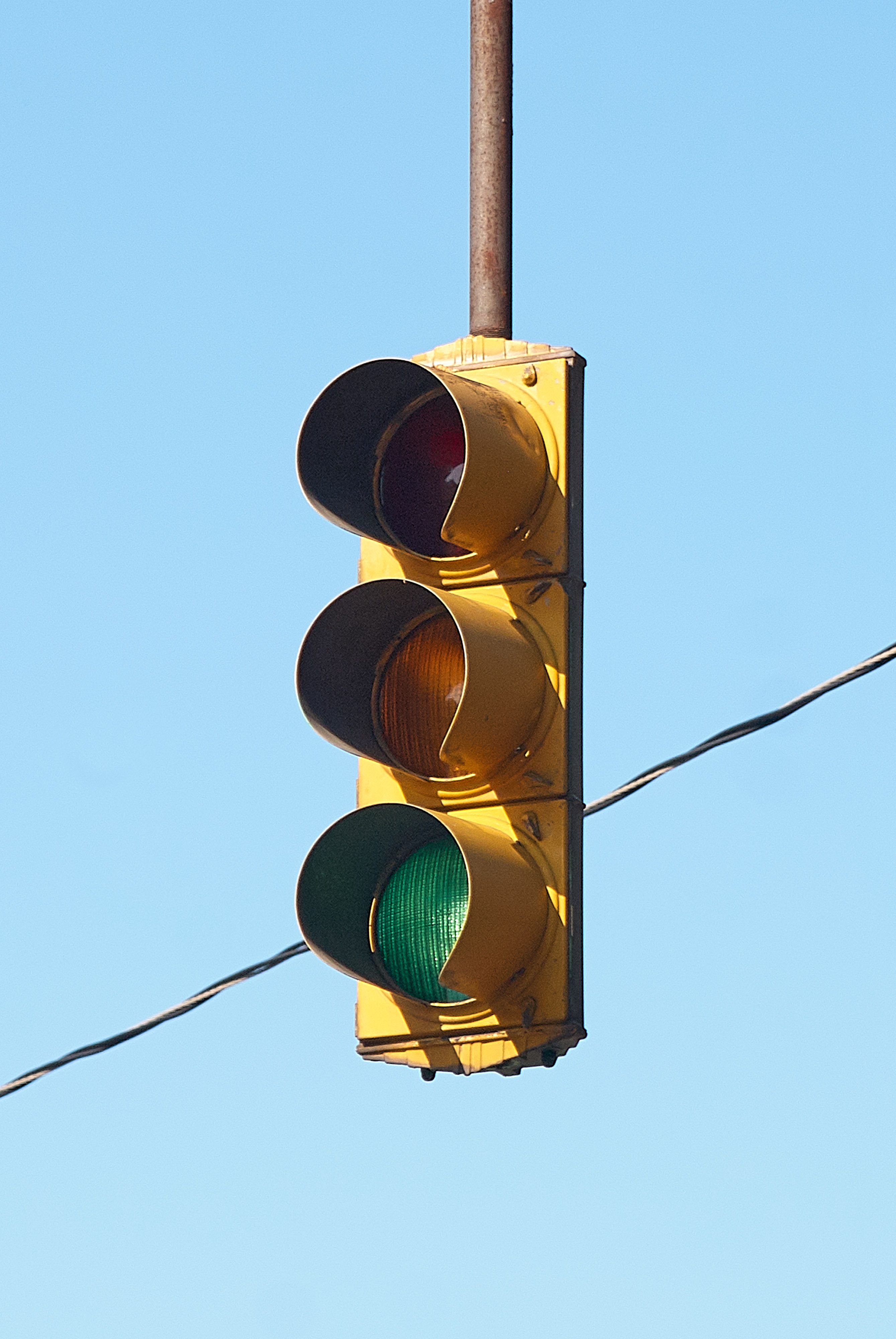 Close-up of one of the Crouse-Hinds Type D art deco signals on Clifton Avenue in front of Good Samaritan Hospital.