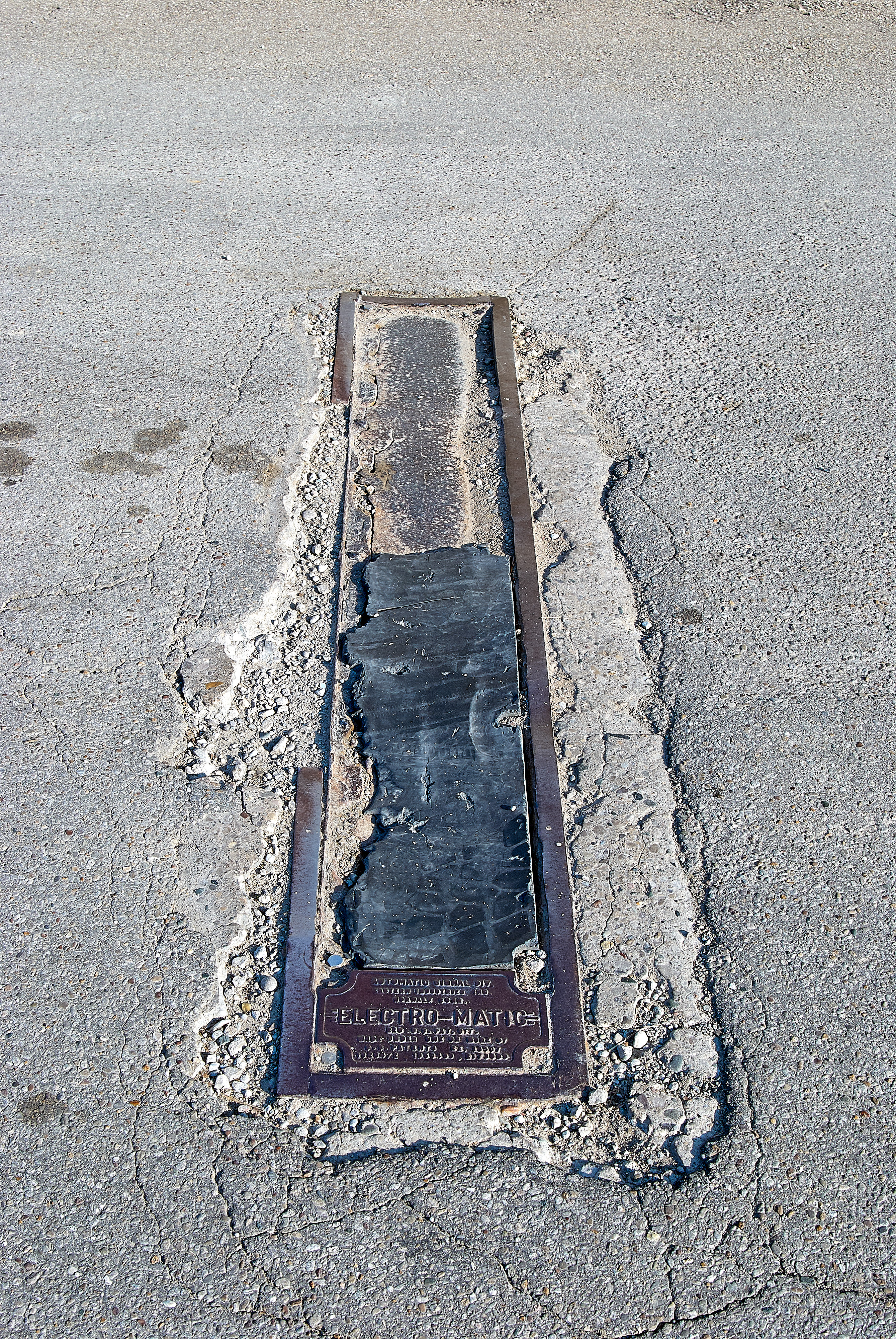 Another shot of the Electro-Matic pressure pad traffic detector in the driveway across from St. Andrews Street in Pendleton.
