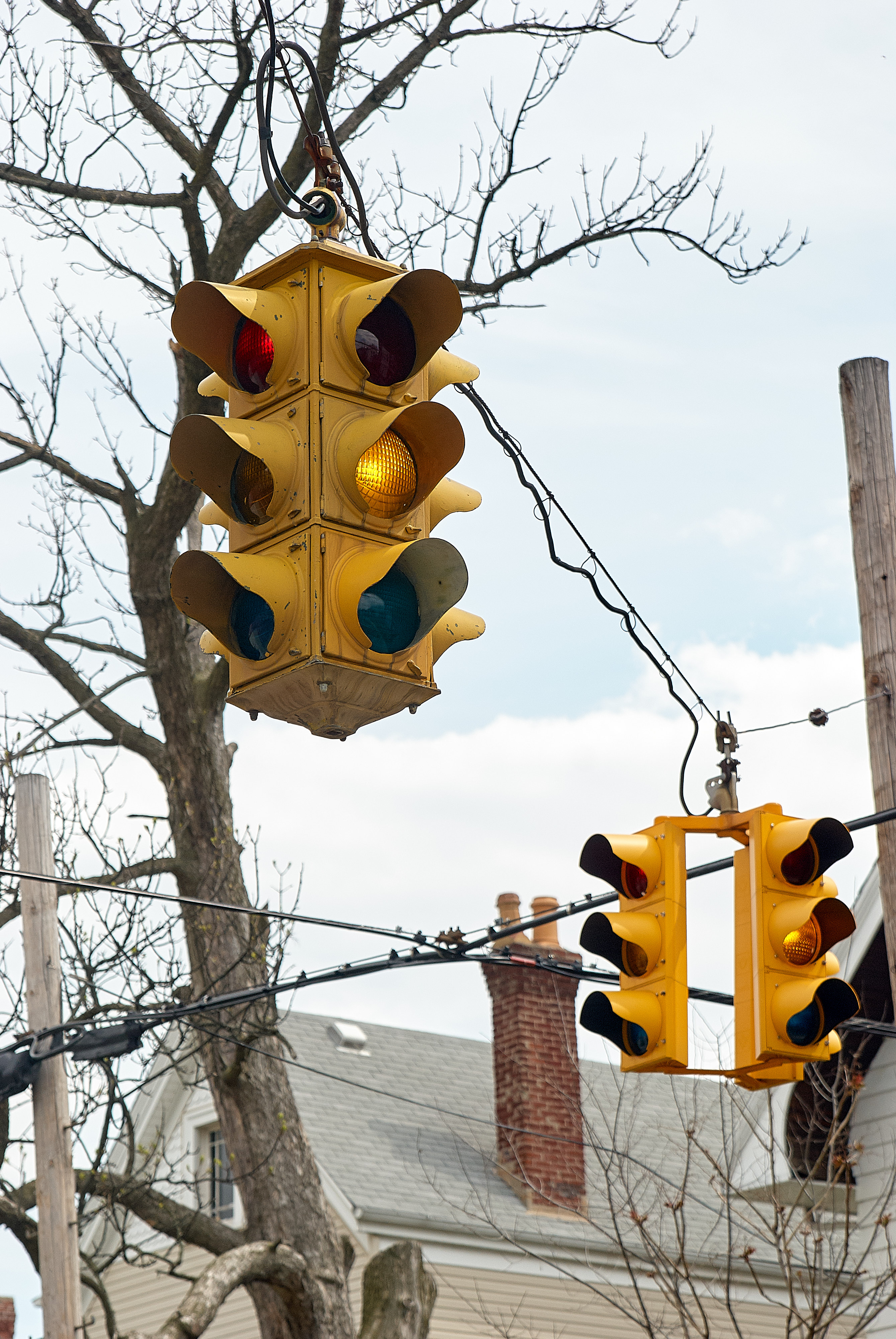 Another 1940s era Crouse-Hinds signal in Norwood, at Allison and Mills, just one block south of the last pair. The signal at the right looks fairly new, though this old one is still in fine shape, with several of its original "smiley" lenses. This old signal was replaced sometime in 2010 or 2011 with a new 3-way cluster like the one on the right.