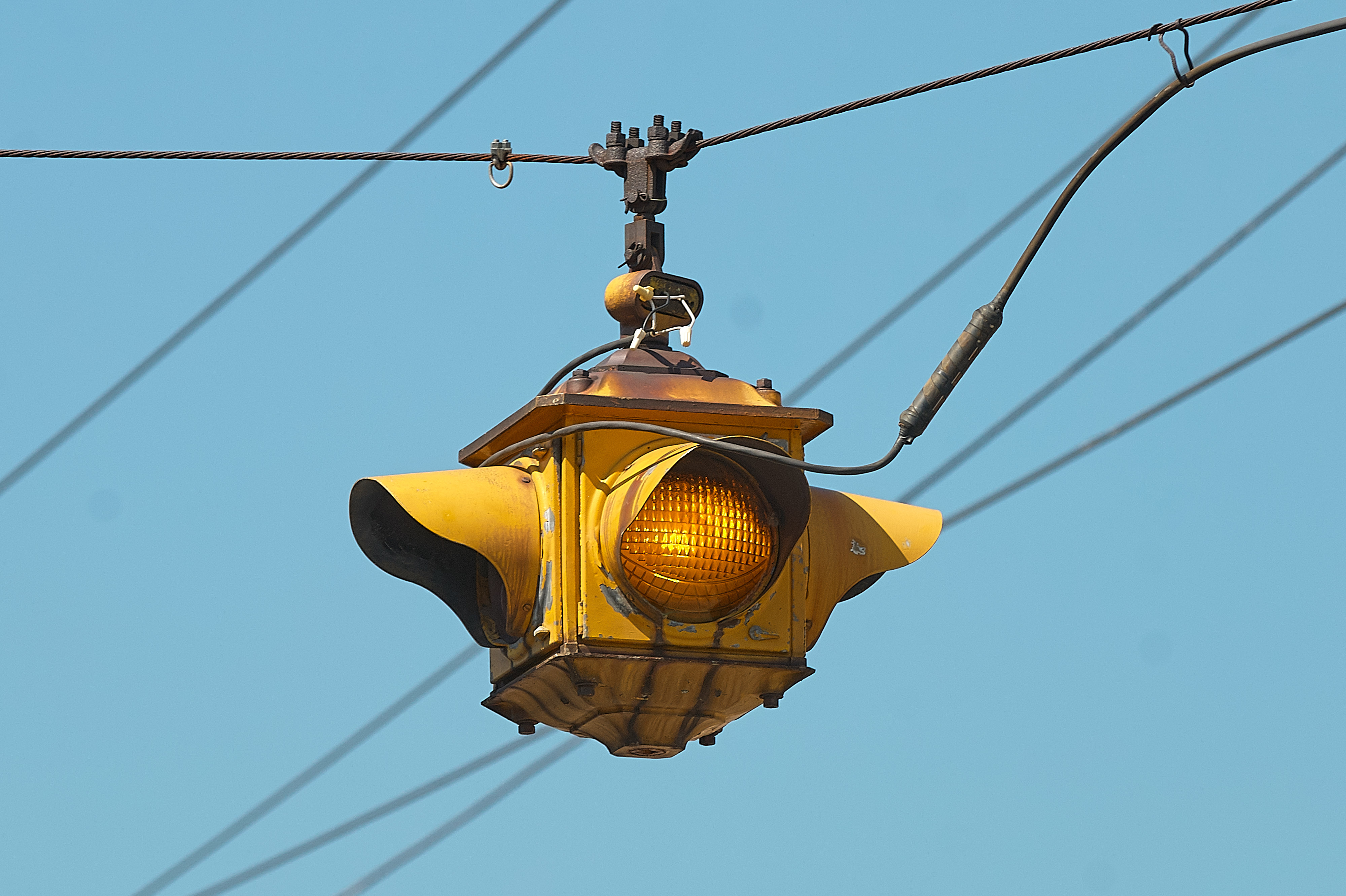 Another Crouse-Hinds beacon at Highland and Orchard, with its original yellow lens. This one probably dated from the 1930s. It has since been replaced with a 3-way cluster.