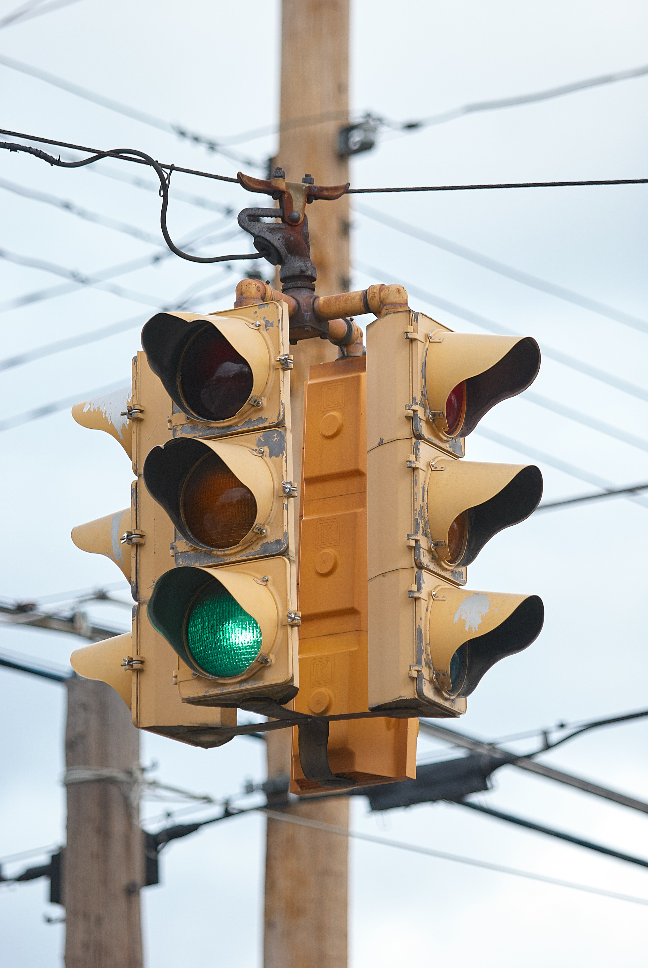A sad collection of Crouse-Hinds Type R signals and a newer Kentron in Lockland at Wyoming and Lock. All signals at this intersection were removed in 2010 or 2011, with stop signs installed on Lock.