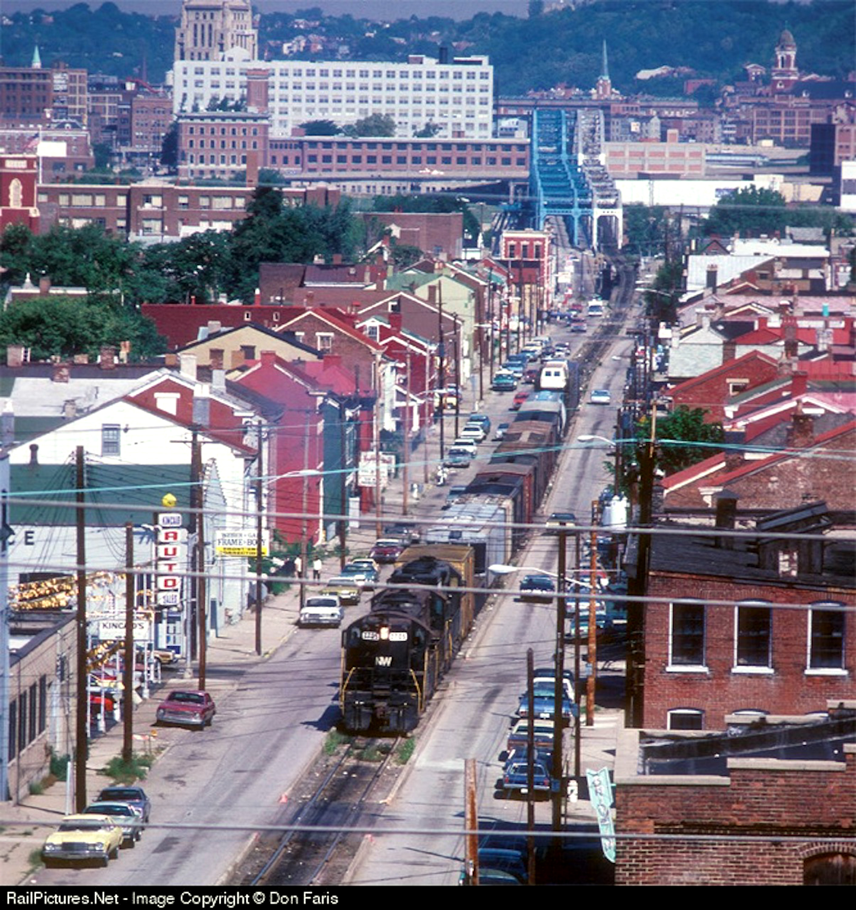 Old photo of the L&N on Saratoga Street in Newport Kentucky, looking north in 1981.