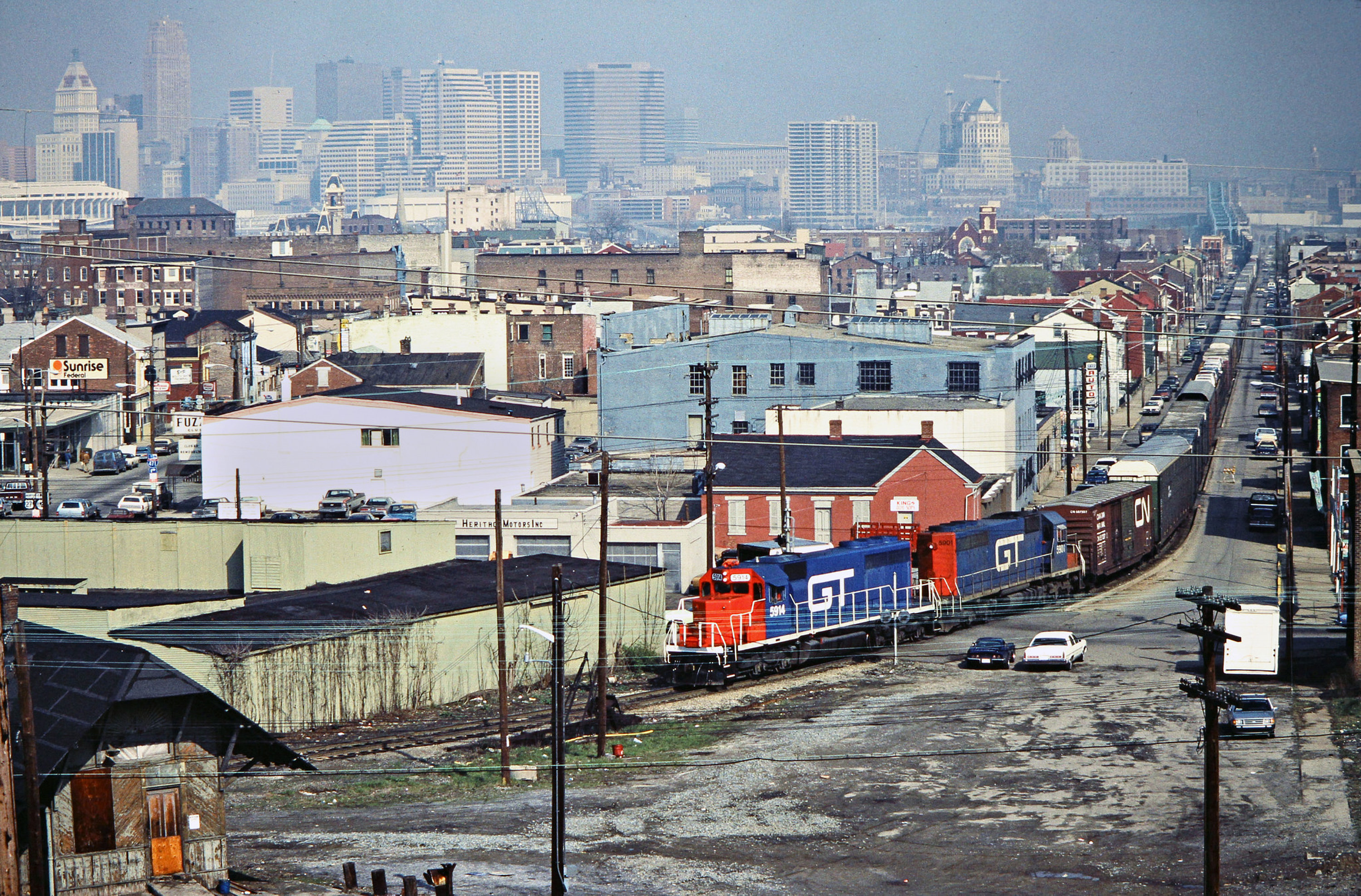 Old photo of the L&N on Saratoga Street in Newport Kentucky, looking north at 11th Street in 1984.