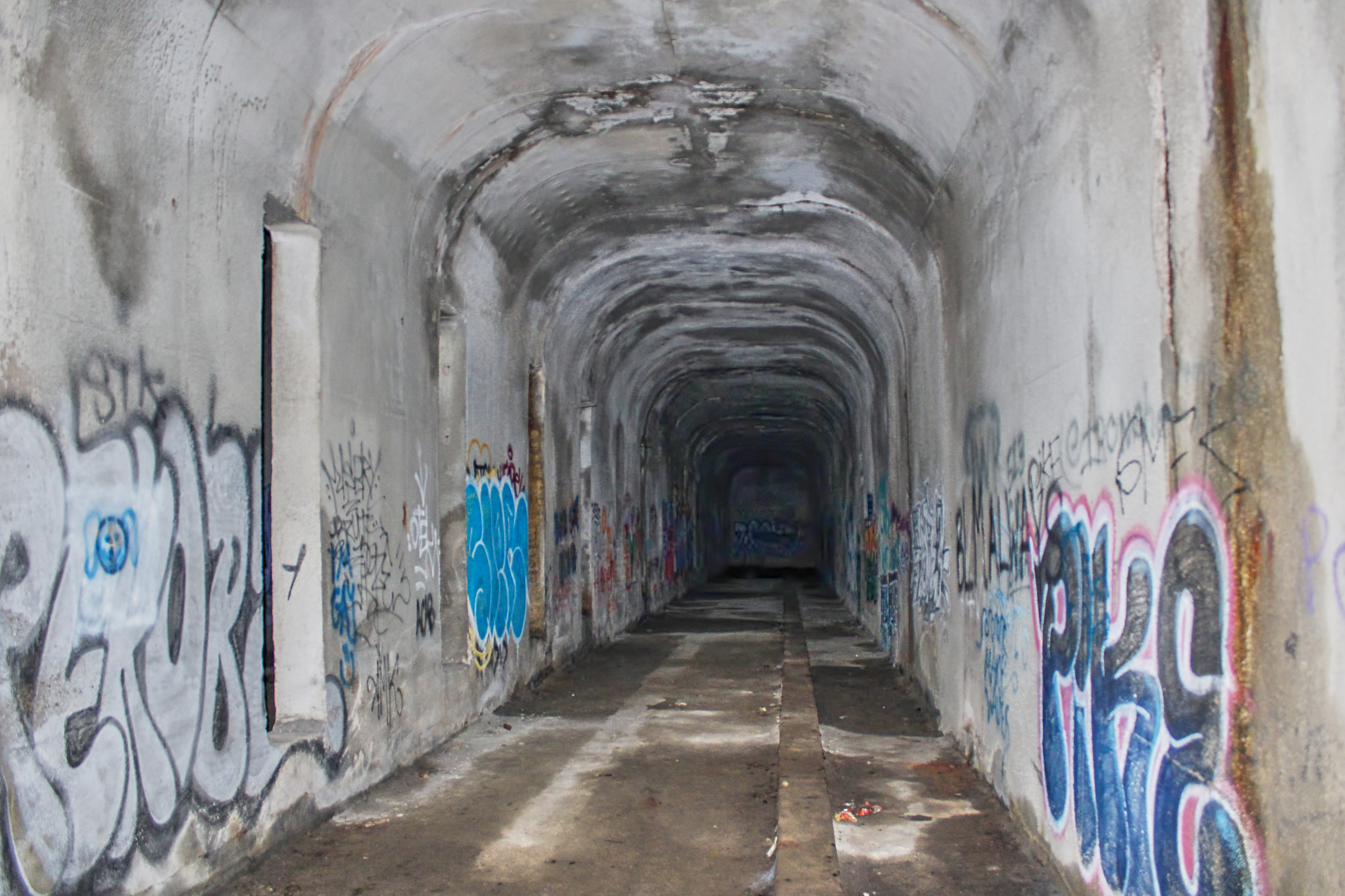 The subway's Hopple Street tunnel northbound tube, looking north.