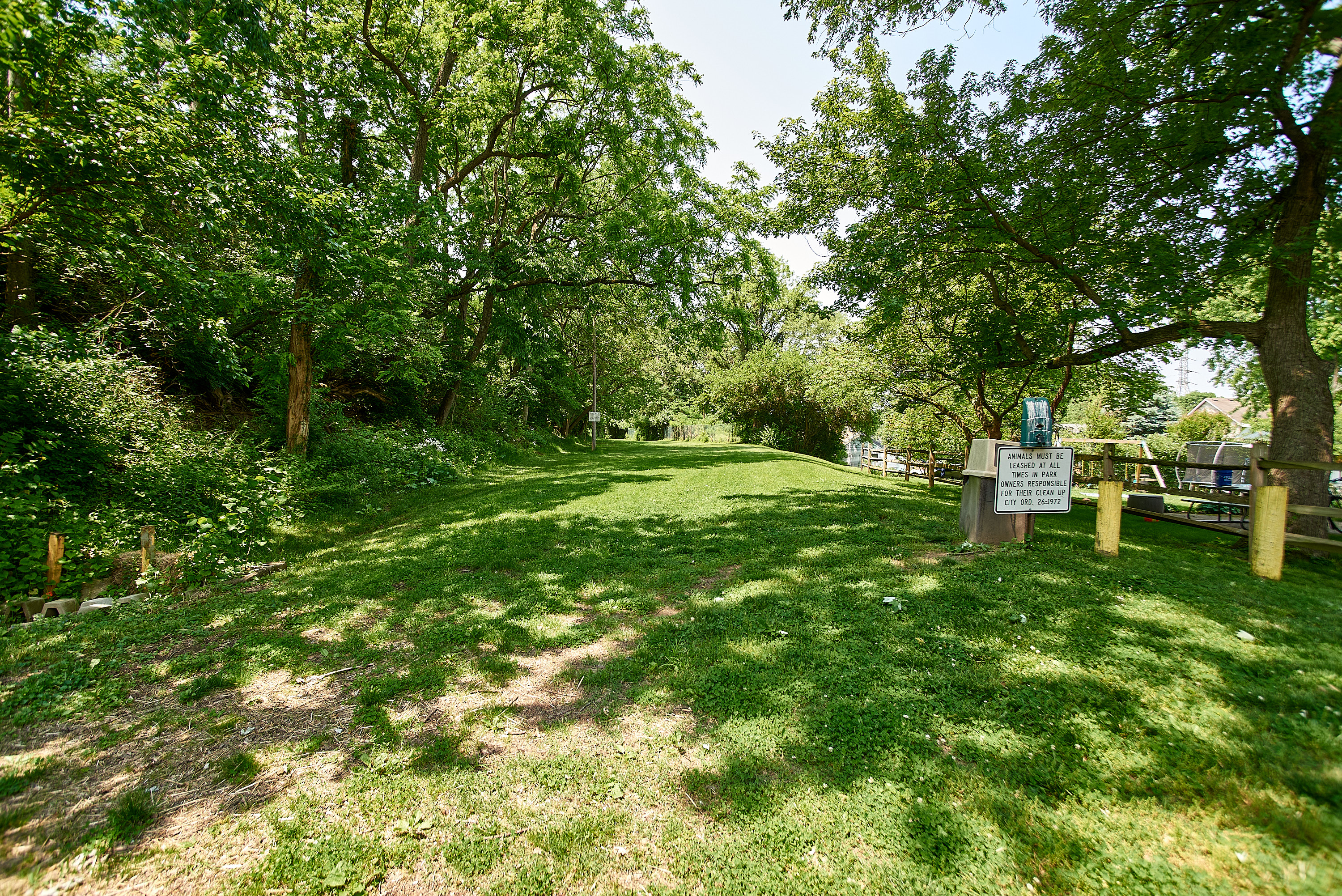 A more recent view of the Subway and Miami & Erie Canal right-of-way at the end of Andalus Court in St. Bernard, looking west. Note the two yellow posts in the drainage ditch at the left from the previous photo. Although the canal has been filled in here, it's pretty easy to see the location of the canal prism and towpath at the right.