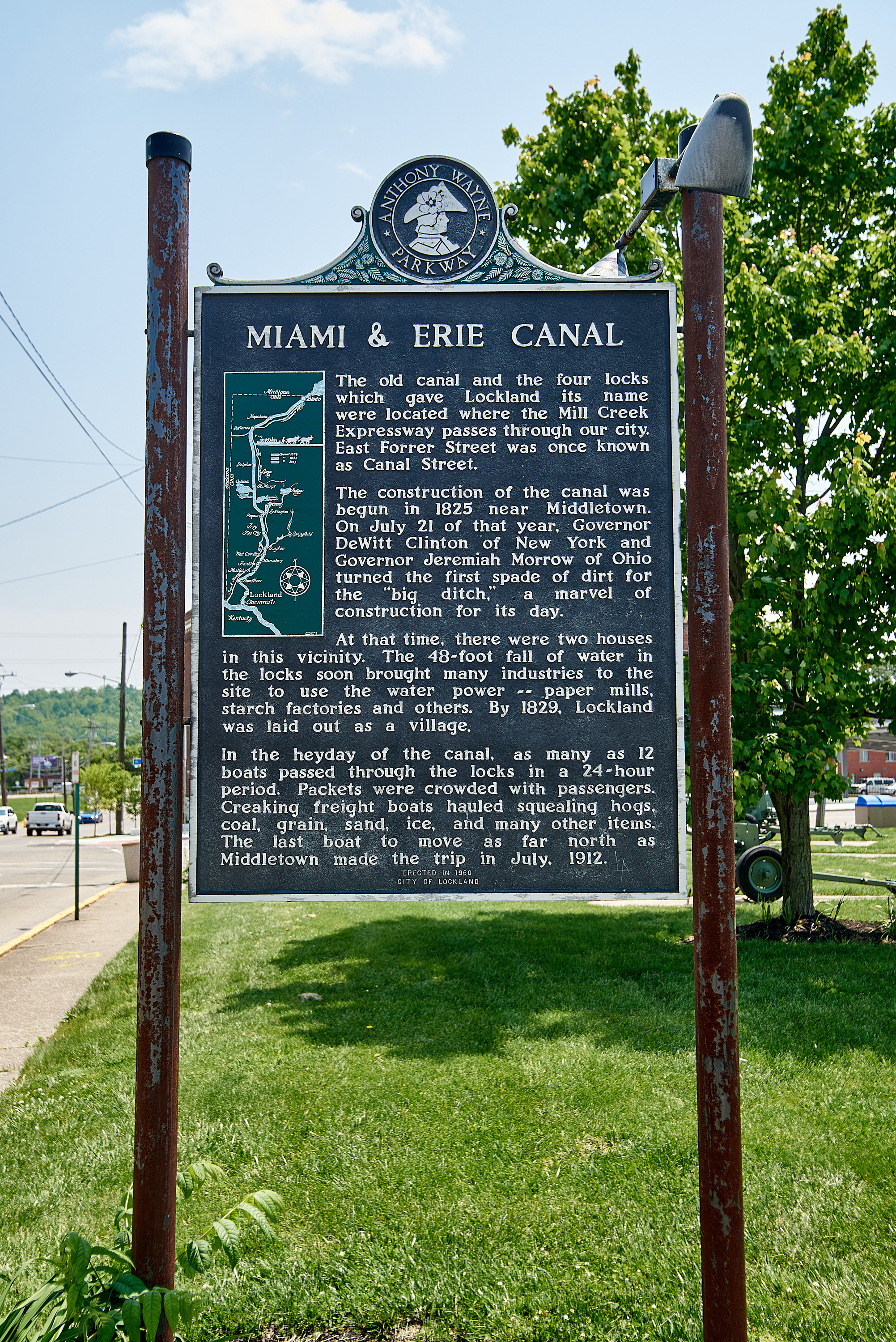 Miami & Erie Canal historical plaque at Lockland's Veterans Memorial Park.