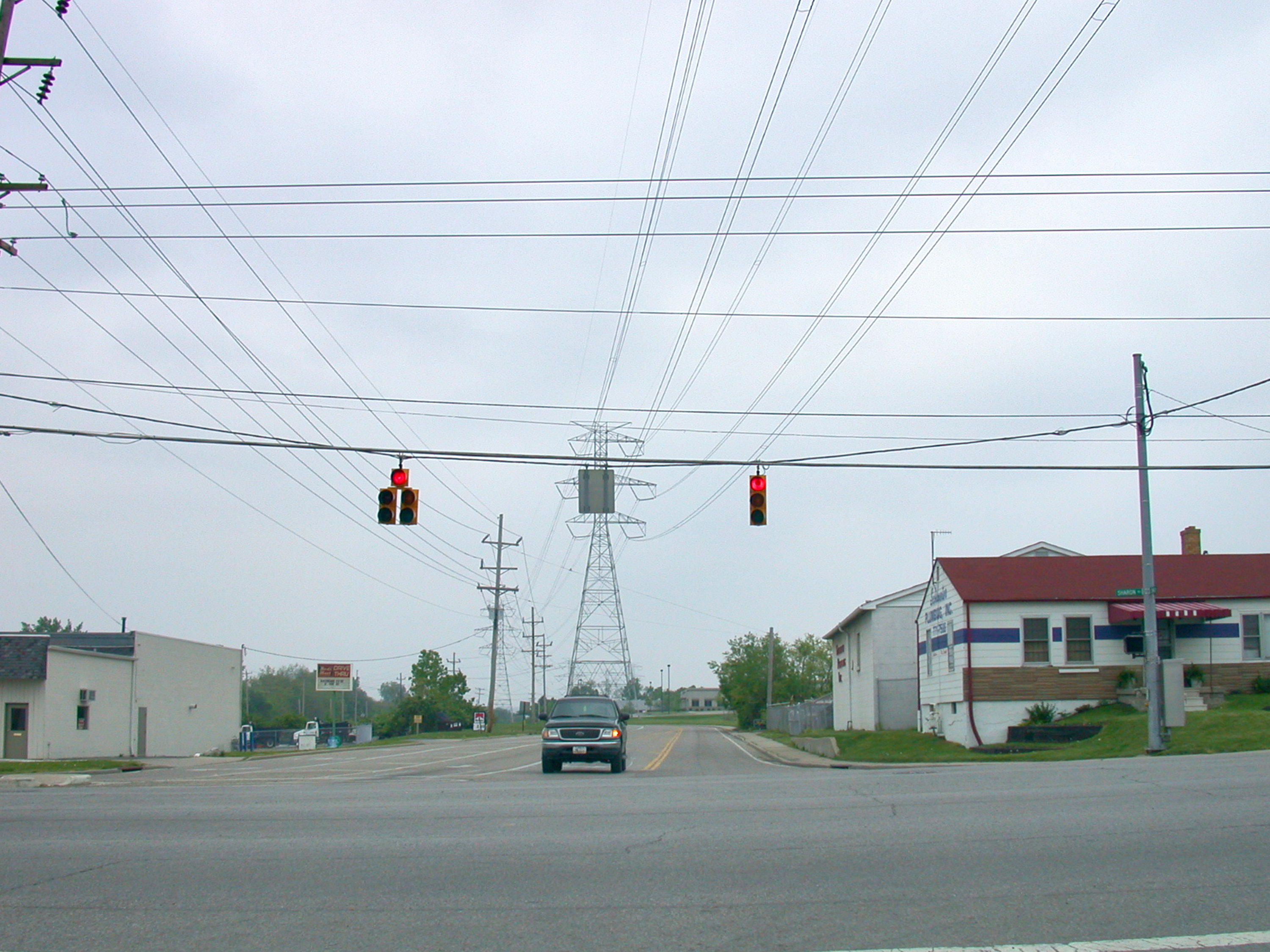 Canal Road in Sharonville, looking south across Sharon Road. The Miami & Erie Canal itself was buried by the street here.