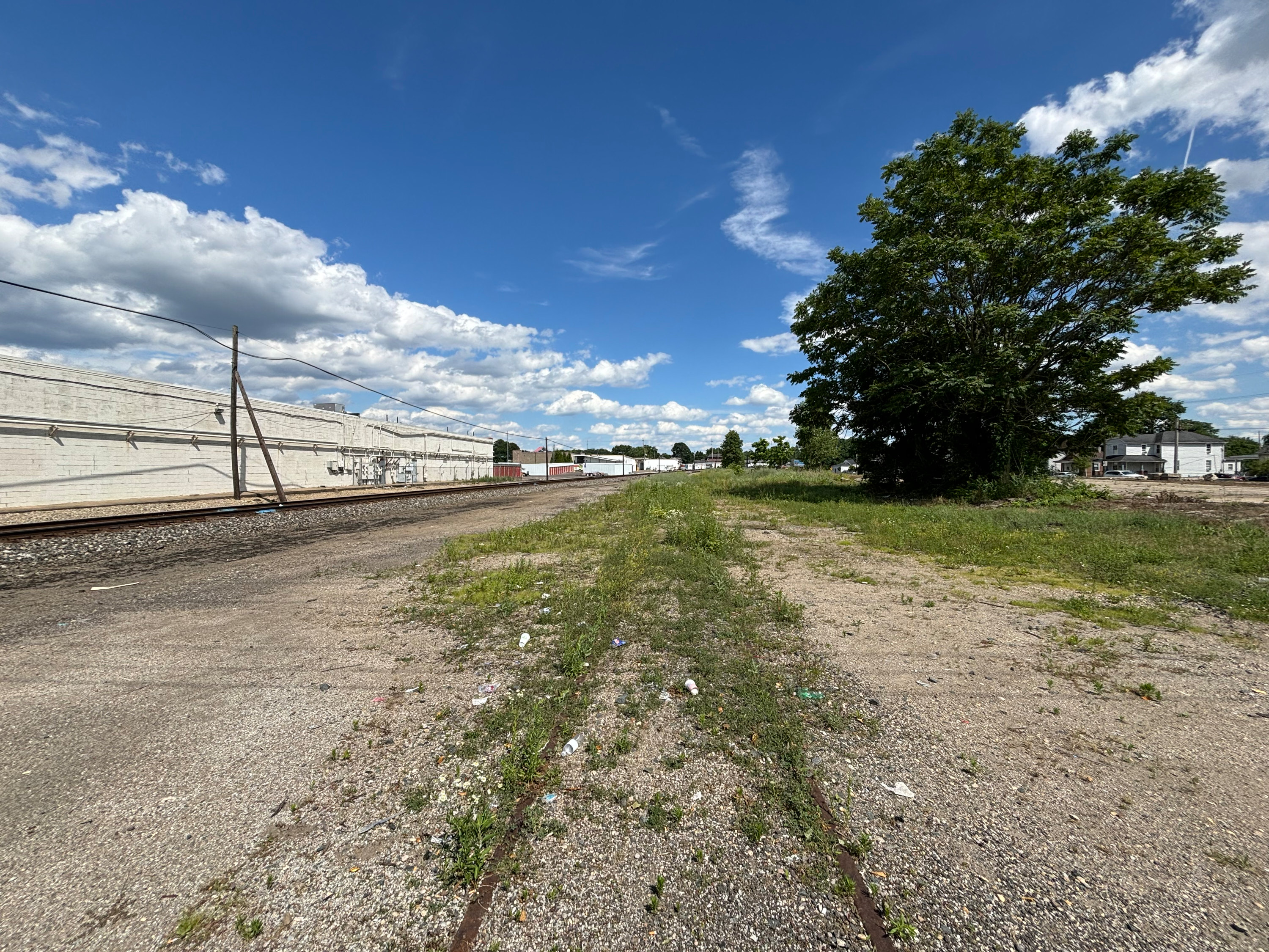 Location of the Miami & Erie Canal Hamilton Basin at East Street, looking east. After the basin was abandoned in the 1870s, it was filled in and replaced with railroads. The track at the left is the fomer PRR Richmond Division. There were also tracks for the B&O/CH&D East Middletown Branch.