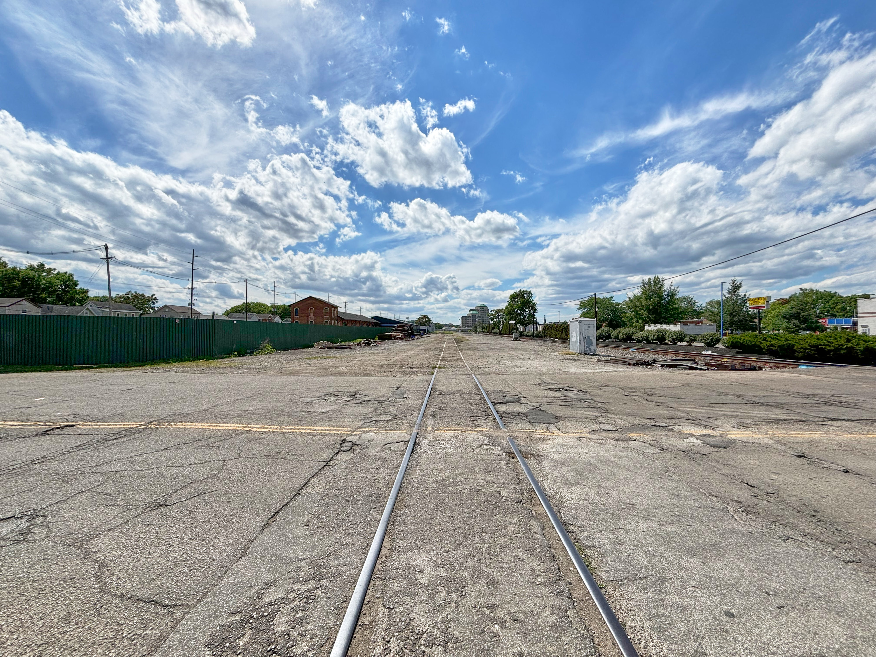 Location of the Miami & Erie Canal Hamilton Basin at East Street, looking west from the vantage point of the previous photo.
