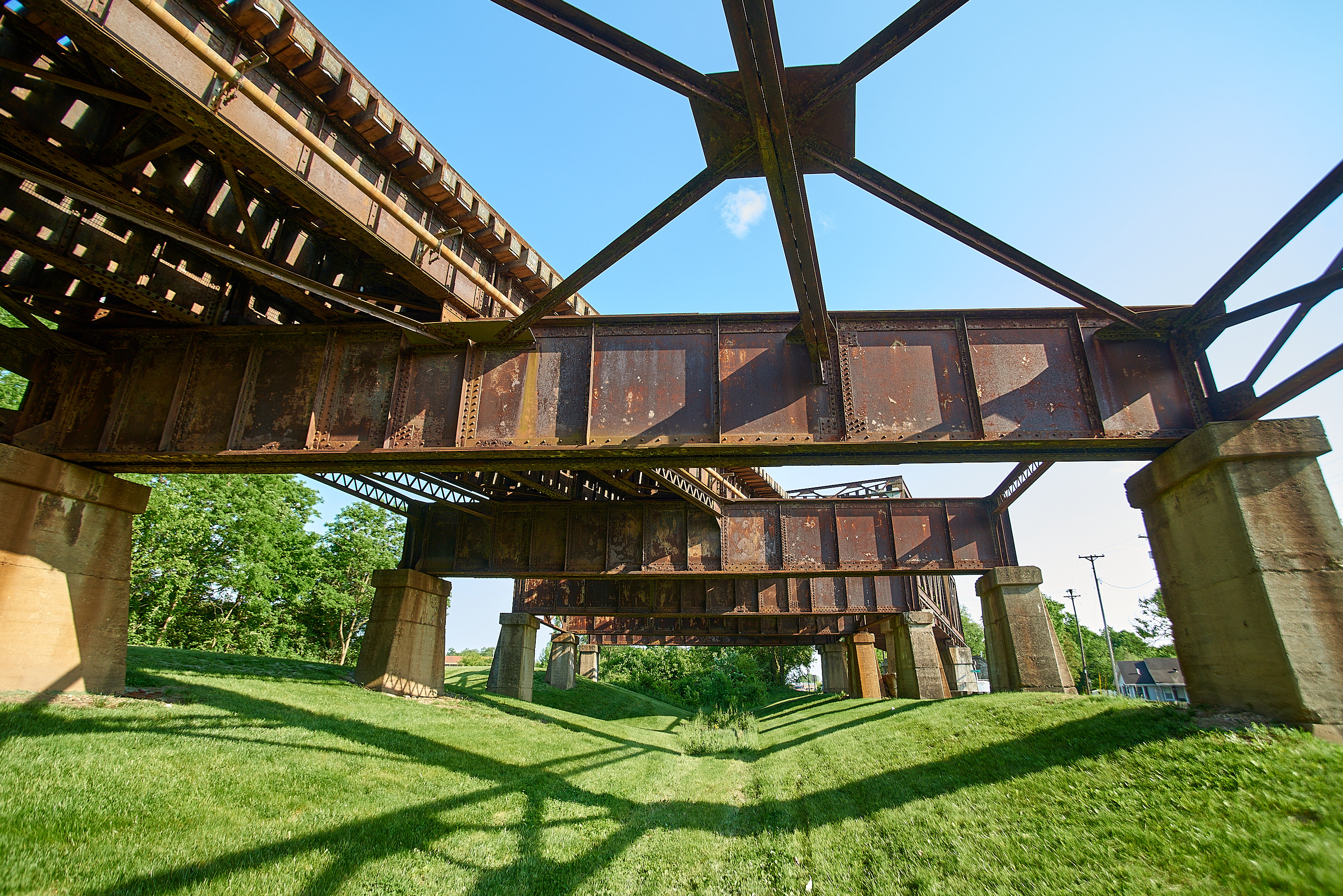 Miami & Erie Canal underneath the former Big Four, now Norfolk Southern Railroad, south of Miamisburg, looking south from the canal basin.