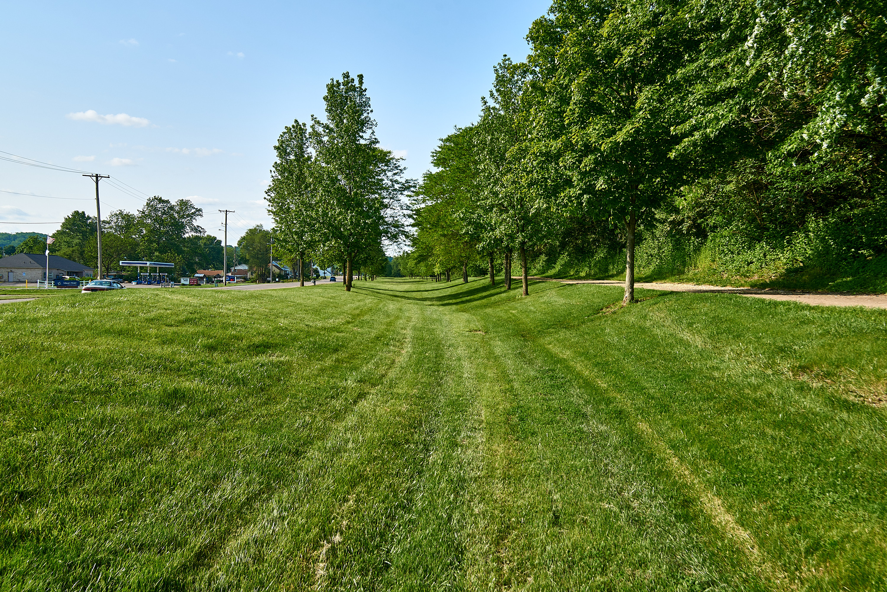 Miami & Erie Canal south of Miamisburg, looking north from the same vantage point as the previous photo. the recreational trail at the right is on the heelpath.